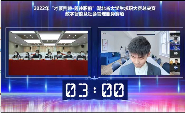 受疫情影响,总决赛在线上举办。为适应企业需求,紧贴职场实际,引导大学生就业能力提升,提供展示自我的舞台,总决赛设置了职场我“秀”(10进6)、“职”属于我(6进3)、巅峰对决(3进1)三个环节。在“数字智能与社会管理服务”赛道总决赛中,钟志炜表现优异,最终荣获二等奖。