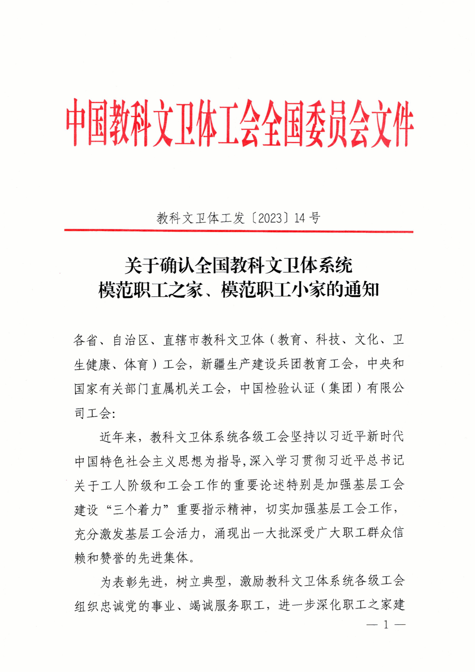 武科大网讯 8月28日,中国教科文卫体工会全国委员会印发了《关于确认全国教科文卫体系统模范职工之家、模范职工小家的通知》(教科文卫体工发〔2023 〕14号),太阳官网工会获批全国教科文卫体系统模范职工之家。