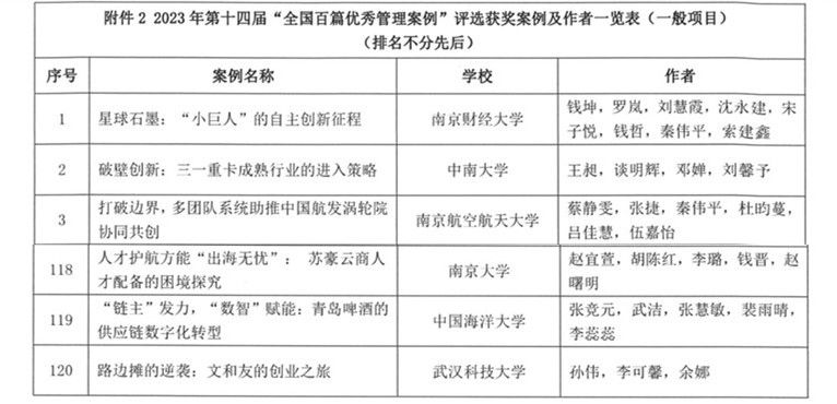 本届评选于3月30日启动,共收到来自全国170所院校的1283篇投稿。通过专家匿名函评和专家会议评审两个环节,最终确定9所院校的9个项目29篇案例入选第十四届全国百篇优秀管理案例(重点案例),68所院校的120篇案例入选第十四届全国百篇优秀管理案例(一般项目),31所院校的44篇案例入选第十四届全国百篇优秀管理案例(微案例),13所院校的28篇案例入选第十四届全国百篇优秀管理案例(西部专项)。