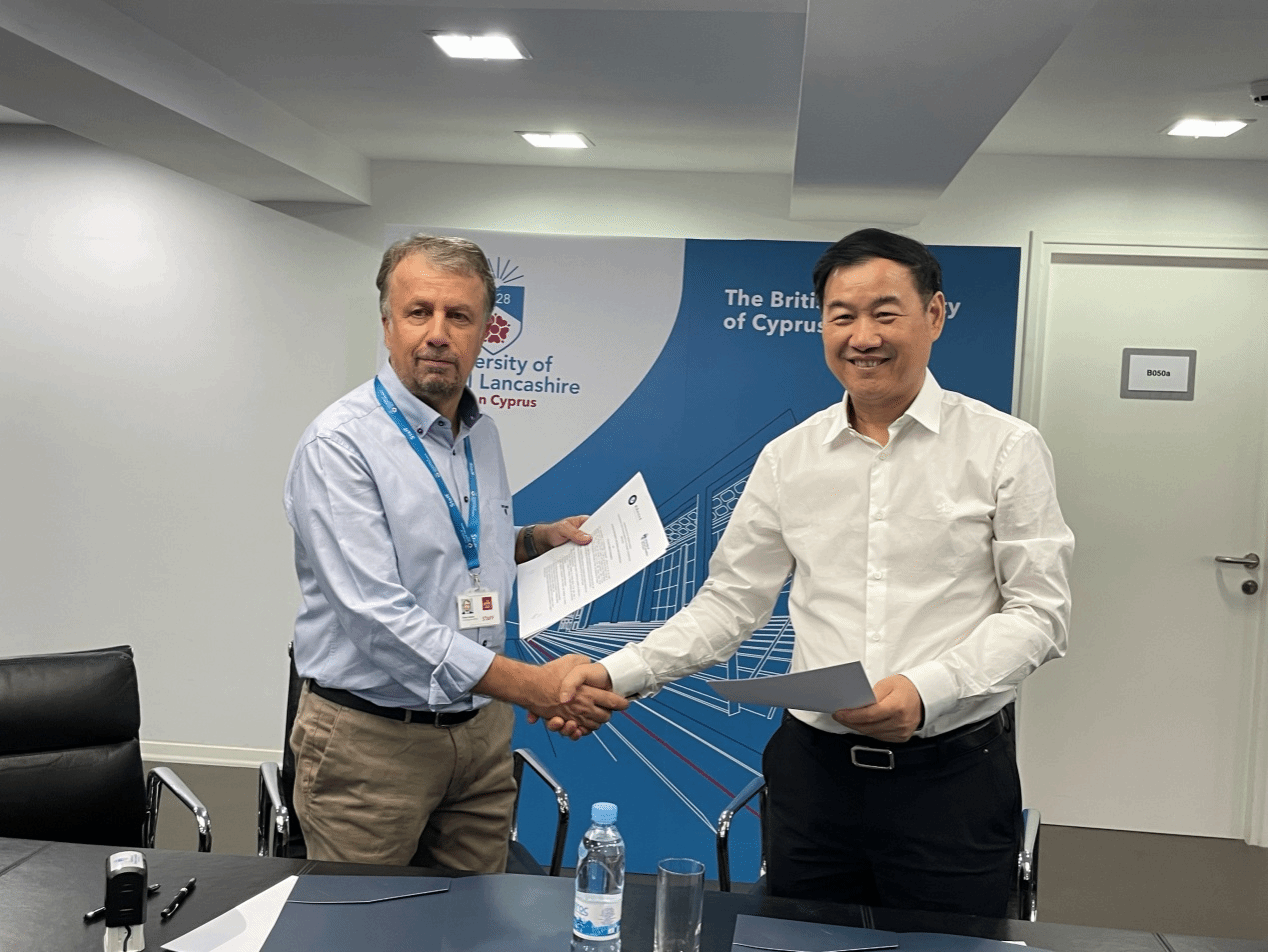 在访问塞浦路斯期间,徐雁冰与塞浦路斯中央兰开夏大学首席执行官兼理事会主席佛罗若斯⸱翁尼亚提斯会谈并共同签署了《中国0638太阳集团官网与塞浦路斯中央兰开夏大学学术合作意向书》,推动双方在教师交流、科研合作,学生交换以及合作办学等方面的合作与交流。