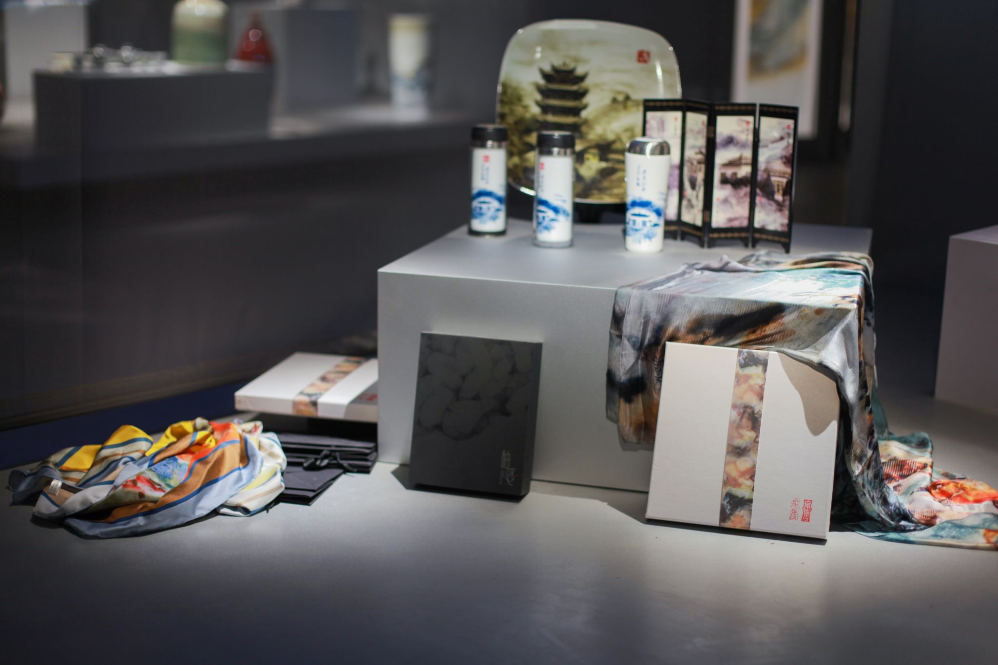 本次艺术展内有三个不同隔间,分别讲述了如何制作瓷板画、创作文化内涵以及艺术品的创新与延伸。管家庆的学生宁阳介绍,每个隔间都配备了声光电设备,结合现代科技,以听和看的方式阐述传统文化魅力。