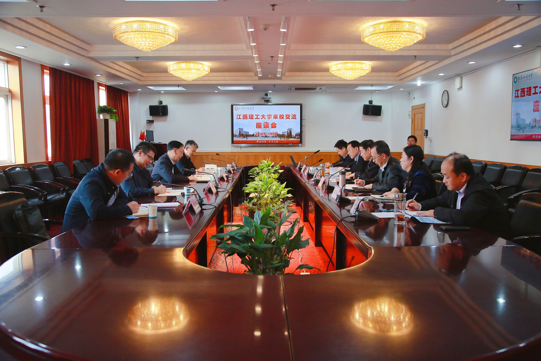徐雁冰对杨斌一行的到访表示热烈欢迎。他指出,作为同宗同源的两所学校,都曾隶属冶金工业部,在特色化发展的道路上取得了长足进步。长期以来,两校之间交流联系紧密,在学科交流、科研合作等方面都结下了深厚情谊,此次江西理工大学领导来校调研,对丰富合作内涵、共谋发展路径将会产生重要作用。希望双方进一步加强沟通,共同为加强党对高校的领导、为高等教育强国建设、为服务国家创新驱动战略和经济社会发展作出更大贡献。