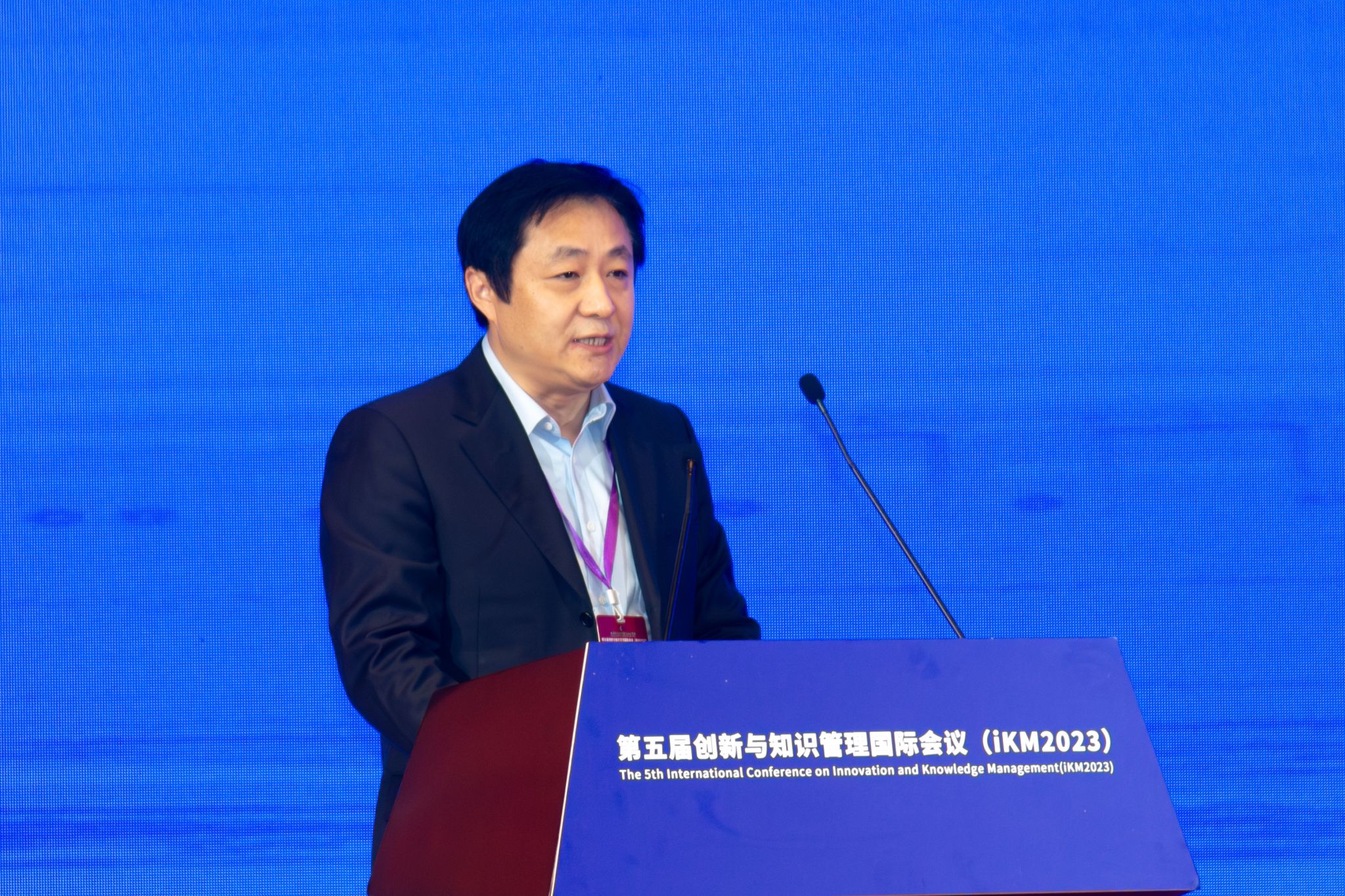 陈劲在讲话中对过去四届创新与知识管理国际会议给予高度评价,同时表示希望通过此次会议促进人工智能技术和知识管理的理论突破与创新,推动国际交流与沟通。