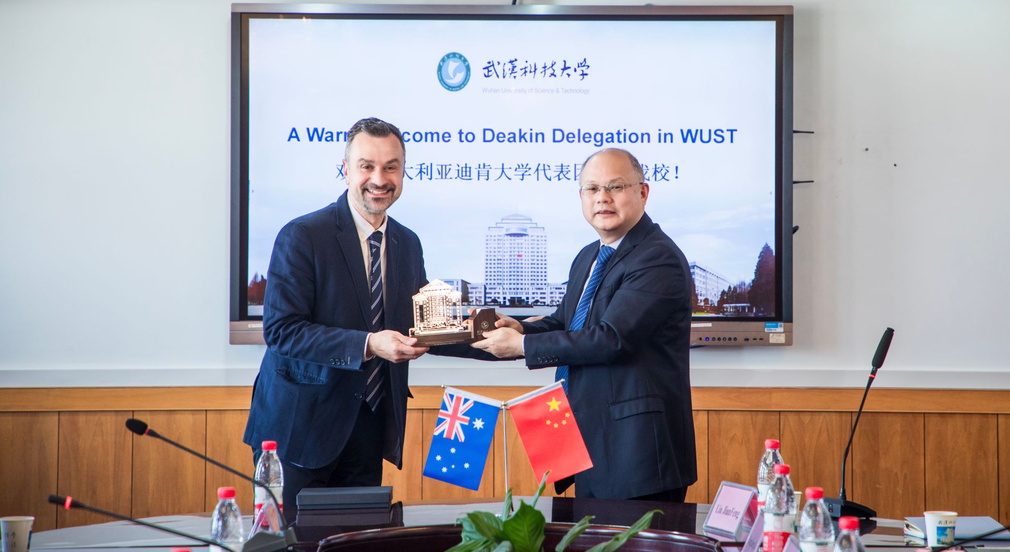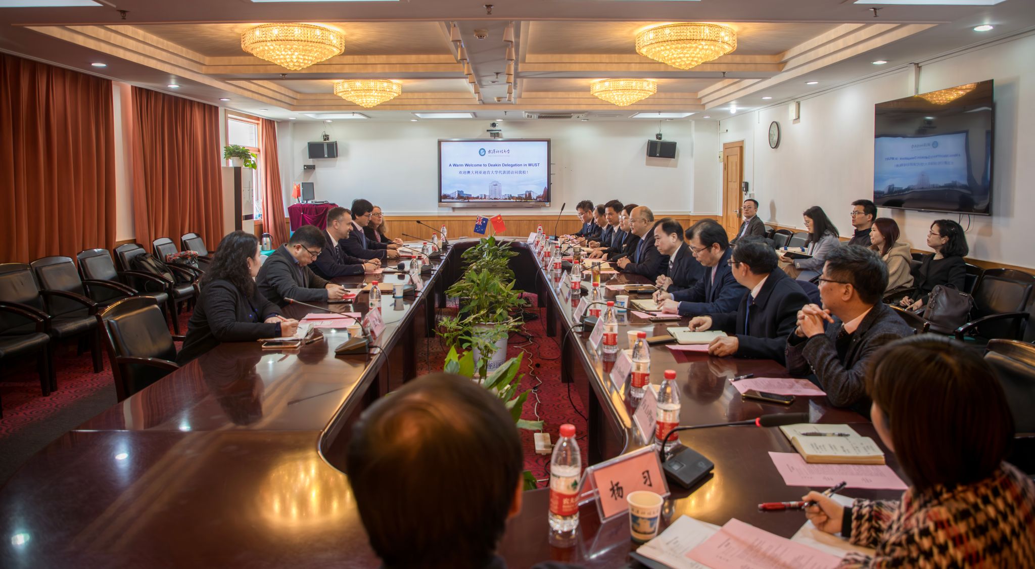 武科大网讯 11月14日,澳大利亚迪肯大学副校长Nick Birbilis率代表团访问太阳官网,校长倪红卫会见代表团一行并座谈。校党委副书记孙国胜参加会议。