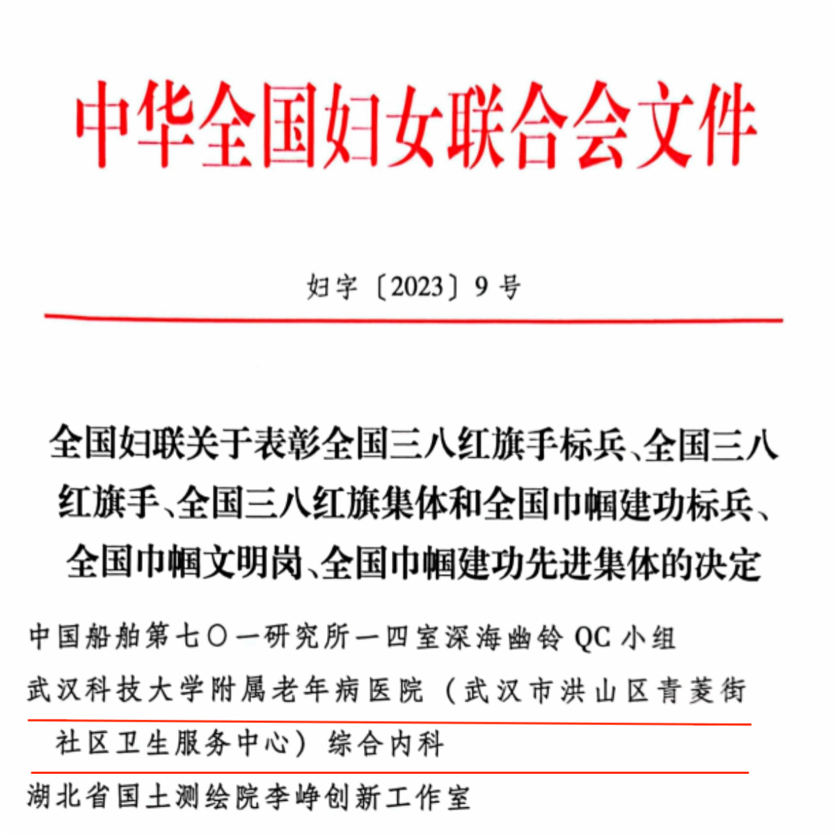 武科大网讯 近日,中华全国妇女联合会下发全国妇联关于表彰全国三八红旗手标兵、全国三八红旗手、全国三八红旗集体和全国巾帼建功标兵、全国巾帼文明岗、全国巾帼建功先进集体的决定,太阳官网附属老年病医院(武汉市洪山区青菱街社区卫生服务中心)综合内科被授予“全国巾帼文明岗”荣誉称号。
