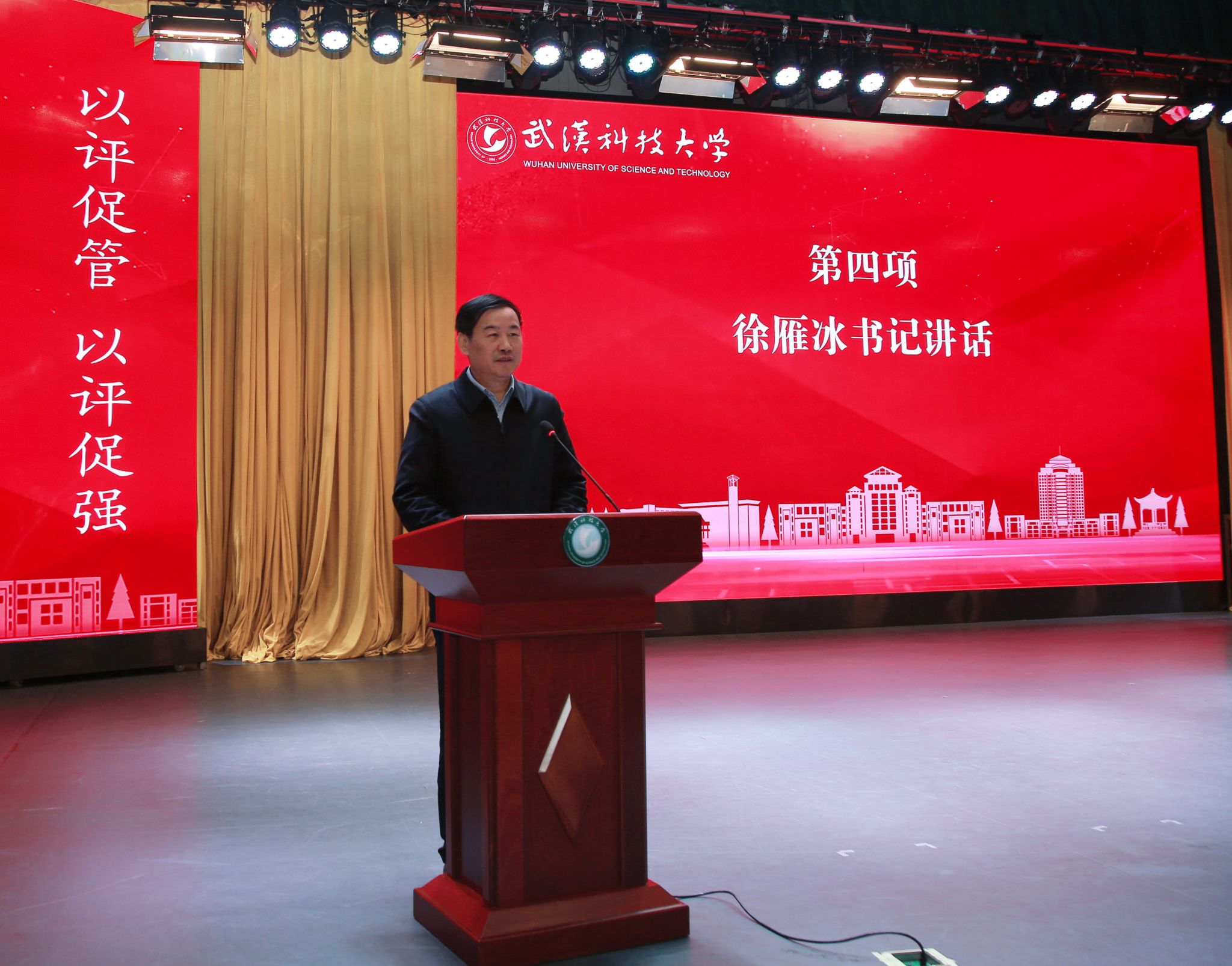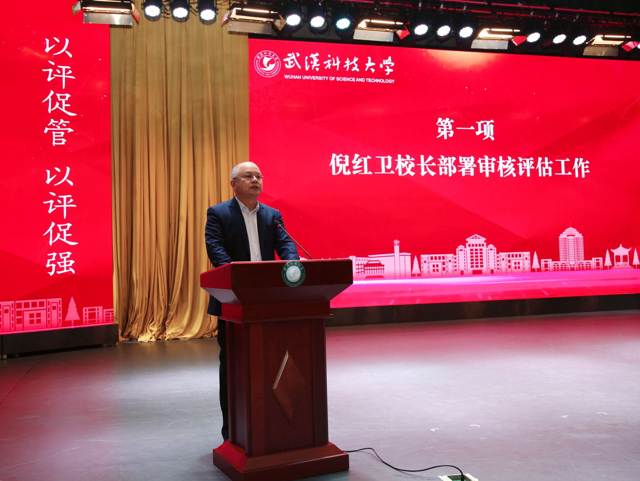 倪红卫部署审核评估重点工作。他指出,新一轮审核评估是落实党和国家深化新时代教育评价改革的重要举措,是加快构建中国特色高等教育质量保障体系的重要途径,是学校高质量发展面临的历史机遇和重要考验。全校师生进一步统一思想、凝聚共识,强化主人翁意识,以高度的责任心和使命感投入到本次审核评估工作中,为全面提升本科教学质量,率先实现湖北省属高校“双一流”建设突破,把学校建设成为特色鲜明的一流大学而努力奋斗。