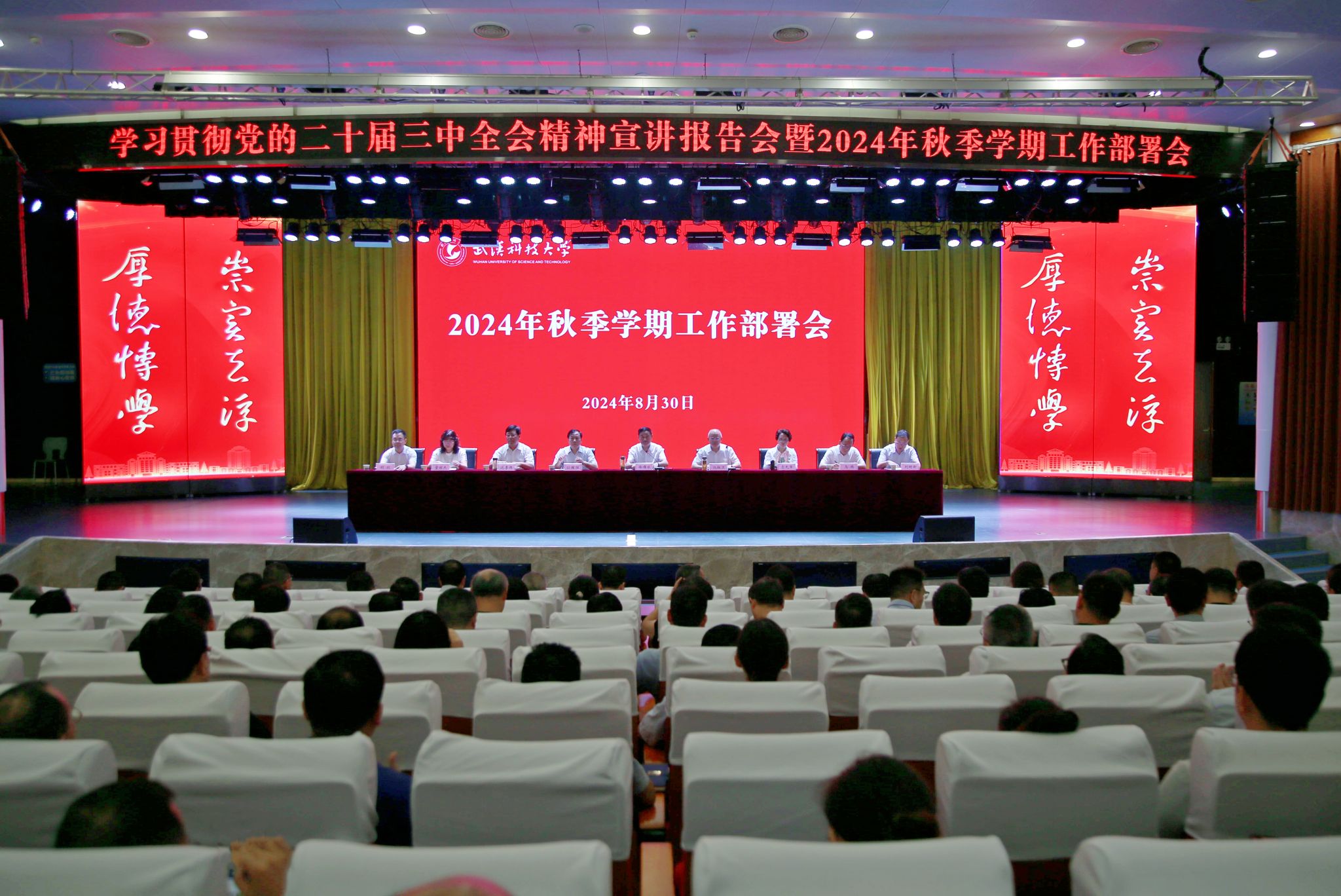 武科大网讯 8月30日,学校在青山校区碧园会堂召开2024年秋季学期工作部署会,校党委书记徐雁冰主持会议并讲话,校长倪红卫作工作报告。全体校领导出席会议。