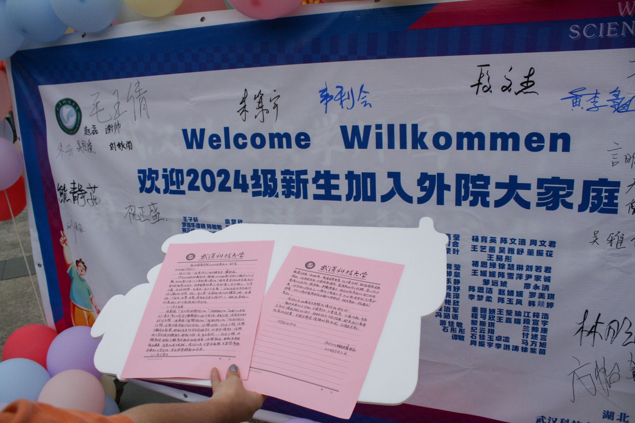 外国语学院为新生准备的毛毡手提袋里,除了宿舍钥匙等基本物资,还有新生辅导员裴林茹手写的《致外国语学院2024级新生的一封信》。这封信分为了未来、学习、生活、恋爱四个板块,裴林茹在信中提出了自己的建议与期待,同时在信的最后留下了自己的联系方式:“无论如何,不要害怕,趁年轻就去干!我的手机二十四小时开机,我非常期待收到大家的回信。”