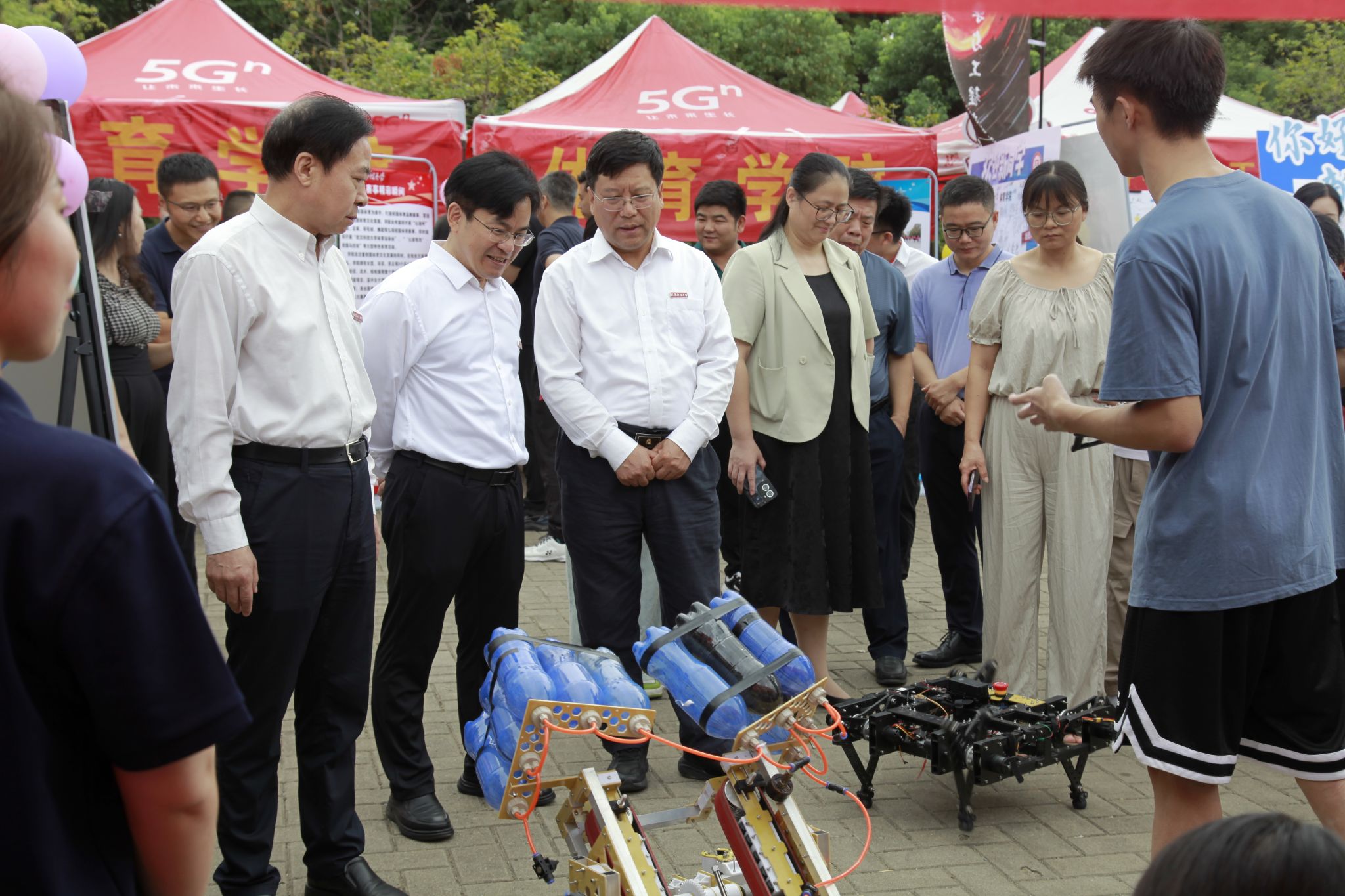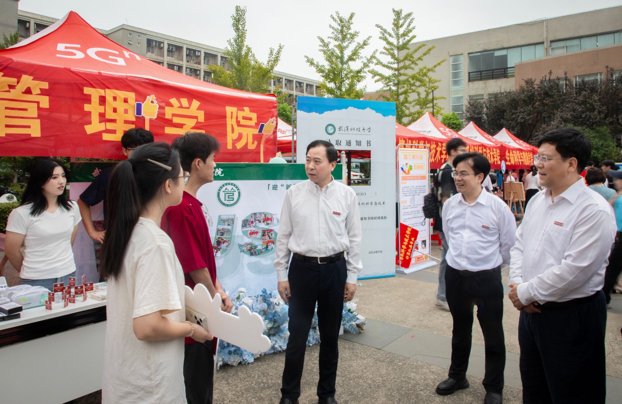 在南北园迎新点,孙国胜、沈季伟、吕勇仔细询问各学院新生报到情况和迎新进展,并与新生们亲切交谈,了解他们的家乡、兴趣爱好以及对大学生活的期待。