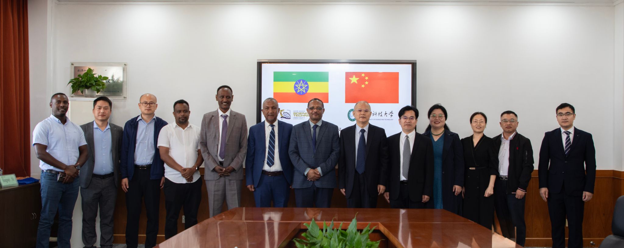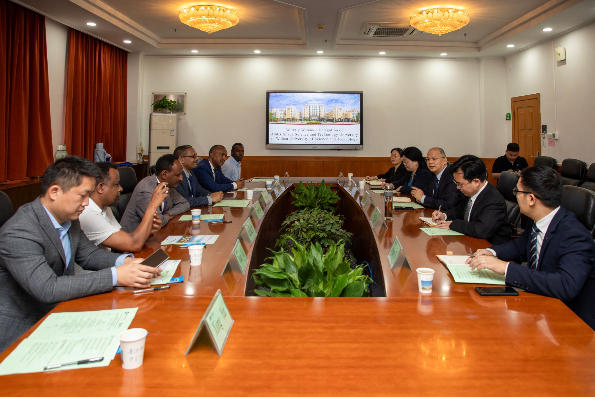 武科大网讯 10月8日,埃塞俄比亚亚的斯亚贝巴科技大学校长Dereje Engida Woldemichael一行7人来访太阳官网,洽谈两校在教师互访、学生交流、联合科研等方面的合作。校长倪红卫、副校长吕勇出席会议。