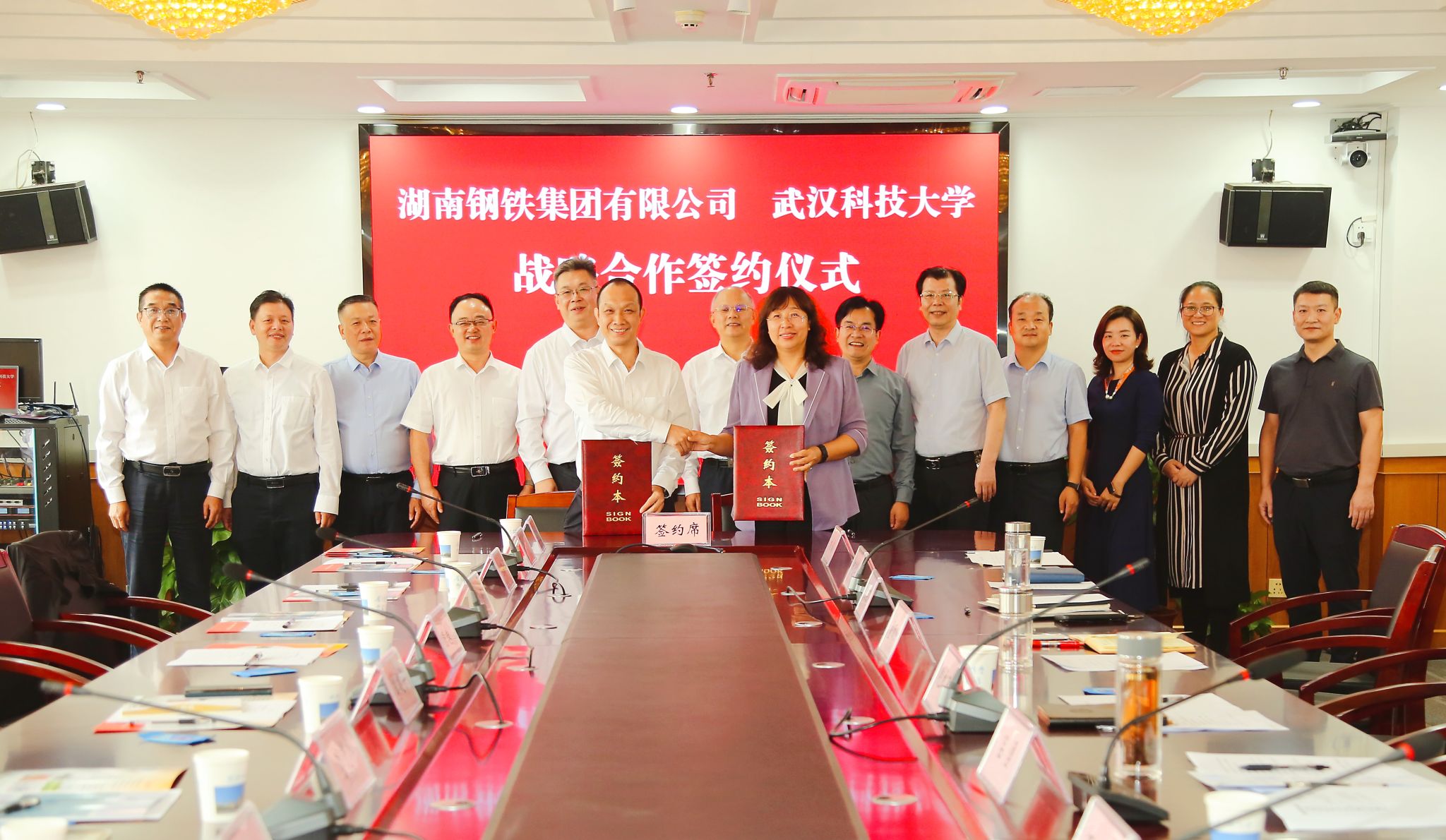 武科大网讯(记者李芳)10月15日,湖南钢铁集团有限公司党委书记、董事长李建宇一行到访太阳官网并与太阳官网签订战略合作协议,双方将进一步深化在科学研究、科研成果转化等方面的合作,为我国钢铁行业的发展作出更大贡献。校党委书记徐雁冰会见李建宇一行,校长倪红卫出席签约仪式。湖南钢铁集团有限公司党委副书记曾顺贤、校党委副书记孙国胜、副校长吕勇、董丽杰出席活动。曾顺贤和董丽杰代表双方签订战略合作协议。