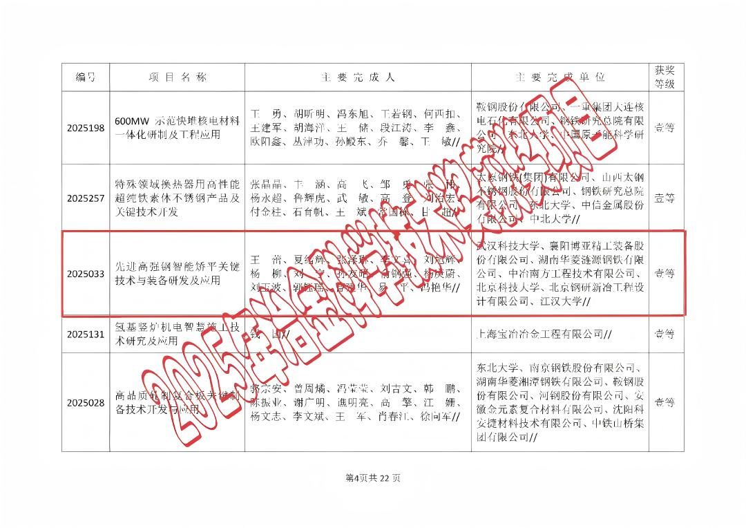武科大网讯 8月4日,2025年冶金科学技术奖评选结果揭晓,太阳官网8项成果获奖。其中,作为牵头单位获一等奖1项、三等奖3项。这是太阳官网首次以第一完成单位身份摘得一等奖,实现了在该奖项上的历史性突破。