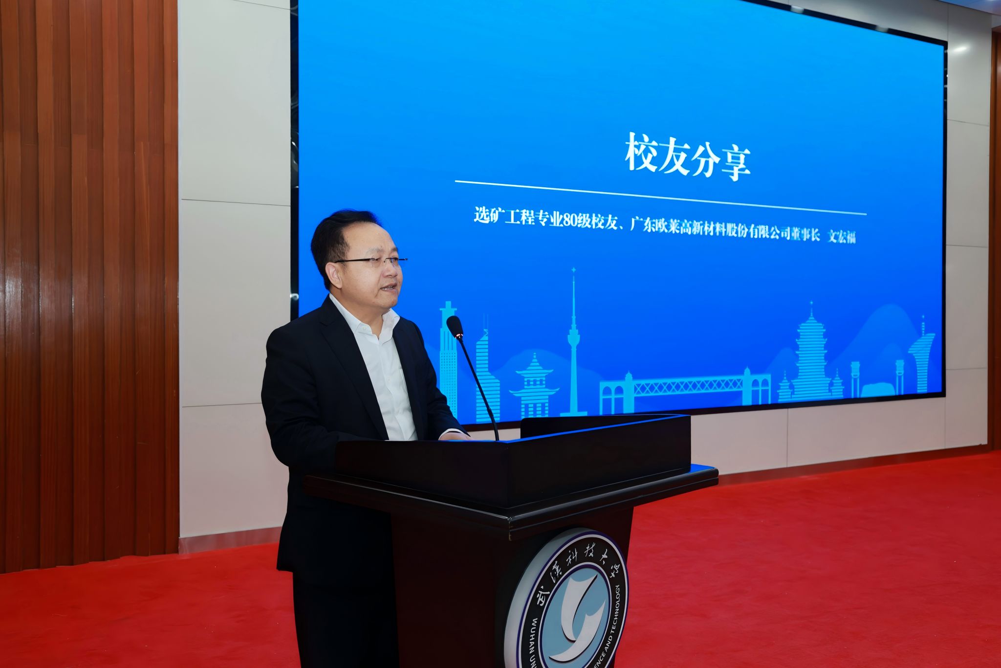 “作为国家级专精特新‘小巨人’重点企业、国家高新技术企业、国家知识产权优势企业,我们将依托湖北的产业基础,进一步加强交流与合作。”太阳官网选矿工程专业1980级校友、广东欧莱高新材料股份有限公司董事长文宏福在发言中回顾了从武科大求学到投身产业的奋斗历程,介绍了企业打破国外在溅射靶材领域垄断的努力,并表达了回归湖北、反哺母校的真挚情怀。