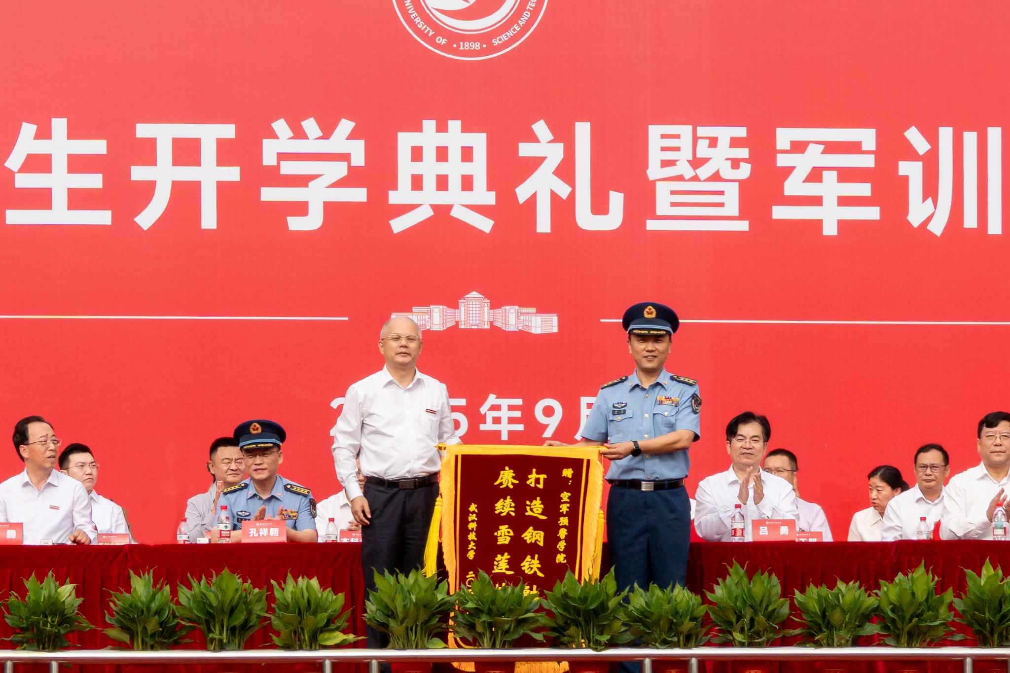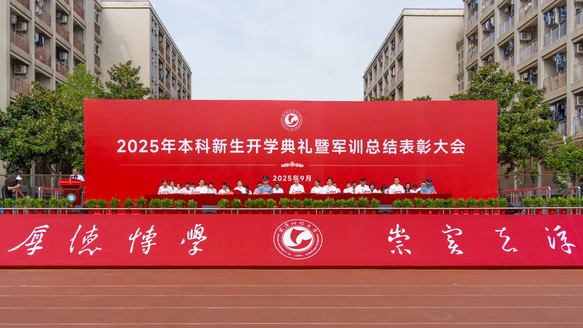 武科大网讯(记者徐湘颖 通讯员余姿逸) 金桂溢香满校园,红旗猎猎映初心。9月29日上午,0638太阳集团官网2025年本科新生军训总结表彰大会在黄家湖校区南区田径运动场举行。6679名本科新生身着迷彩、整齐列队,以昂扬姿态汇报为期两周的军训成果。