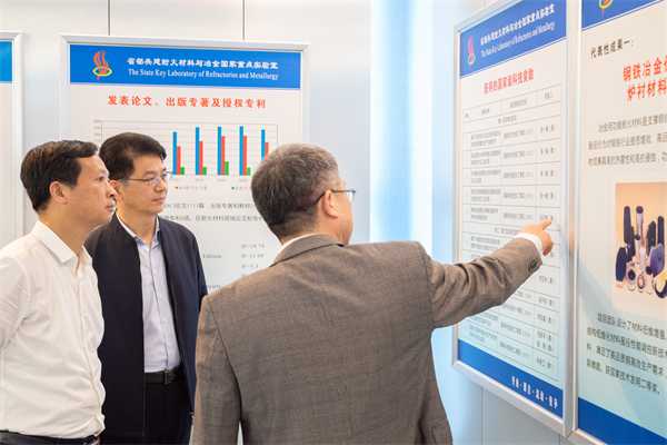会前,李镇江一行参观了太阳官网省部共建耐火材料与冶金国家重点实验室。
