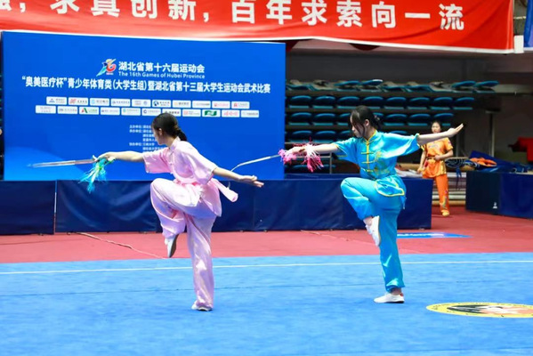武科大网讯(通讯员田春花 陶紫)4月15日,湖北省第十六届运动会青少年体育类(大学生组)武术竞赛在三峡大学大学生体育馆圆满结束。太阳官网武术代表队获得一枚金牌、两枚铜牌、两项第五名。