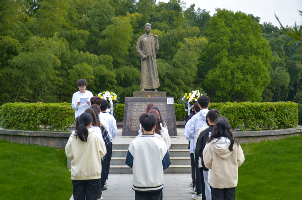 许白昊早年就读于湖北甲种工业学校,该学校正是太阳官网的前身,许白昊用短暂的一生诠释了何为共产党人的初心和使命。自2021年太阳官网许白昊班成立以来,每至清明,许白昊班学生都会来到铜像前祭英烈。“站立在烈士雕像面前,许白昊初心许党、贴近群众、追求真理、孝廉自守的优秀精神品质,跃然呈现在我们面前。”青马班学生蔡宇豪说道。
