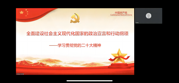 第二届全国高校思政课教学展示特等奖获得者、校理论宣讲团成员、马克思主义学院副教授郑琼梅以全面建设社会主义现代化国家的政治宣言和行动纲领为题,对党的二十大会议精神进行专题辅导。郑老师全面阐释了党的二十大的主题、主要成果和重大意义,深入解读了全面建设社会主义现代化国家的实践基础、思想指引、目标任务、战略部署、政治保证,从坚定历史自信增强历史主动实现伟大梦想的维度,提出了全面学习、把握、落实 党的二十大精神的指导性意见,最后带领大家学习了二十大党章的修改内容。