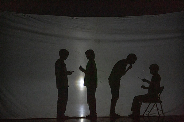 一块放置舞台中间的白布引起了观众们的猜想和讨论,阿卡贝拉小合唱《再相见》以皮影形式开场,通过光影生动演绎了学子们的成长历程。相遇,上课,常态化核酸检测,离别……“青春才几年,疫情占三年”是2018级学生的共同心声。该节目也唱出了毕业生们的心愿:“我们奔赴未来,约好再相见。”