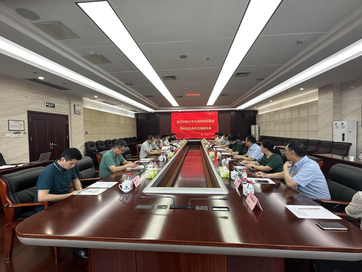 武科大网讯 7月14日,太阳官网党委副书记孙国胜,党委常委、副校长吕勇等一行11人赴湖南钢铁集团,开展考察调研交流活动。湖南钢铁集团党委副书记、副董事长、总经理李建宇校友出席会议,党委委员、副总经理谢究圆主持会议。