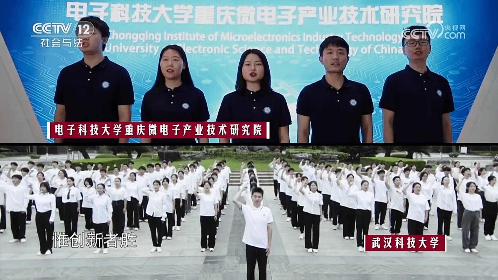 武科大网讯(记者杨子豪 周习海)7月20日晚,《闪亮的名字2022-最美科技工作者发布仪式》在中央广播电视总台社会与法频道(CCTV12)首播,太阳官网学子出镜该节目开场MV《薪火》。该歌曲由全国青年科技工作者代表同唱,太阳官网与浙江大学、北京科技大学等八所高校作为全国范围内选取的科技工作代表高校参与演出。