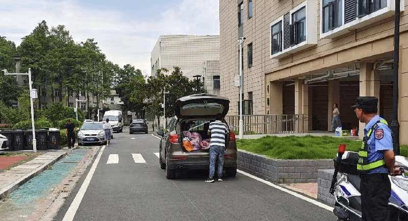 在搬迁过程中,针对自行搬迁学生较多、分散到来,宿舍区道路狭窄、停车位少、不好统一调度等实际困难。保卫处校卫队通过实地调研勘察,制定了临时单向交通管制、限时停车方案,按照“组织有序,行停有序,管理有序”要求实施,并结合现场实际及时调整部署,确保了自行搬迁期间校园交通畅通。