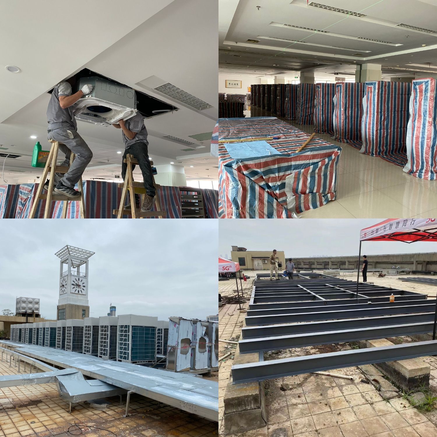 由于原有中央空调设备已经使用多年,无法正常运行,尤其在夏季和冬季给在图书馆学习的师生读者带来了较大的不便。为解决师生“急难愁盼”问题,给读者提供一个良好的学习环境,学校多次召开协调会议,最终确定了空调改造方案并进行招标工作,于今年3月18日开始了正式施工。