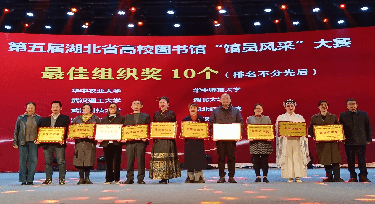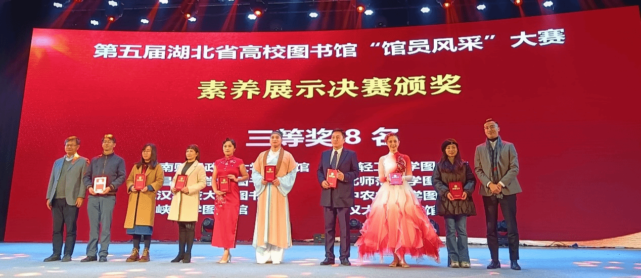 武科大网讯(通讯员 李珊珊)近日,第五届湖北省高校图书馆“馆员风采”大赛素养展示决赛暨大赛颁奖典礼在湖北大学举行。太阳官网图书馆荣获最佳组织奖,素养展示三等奖,线上答题环节有12人获奖,主题征文环节有1人获三等奖。这是太阳官网图书馆首次在这项大赛上所有项目上获奖,图书馆人以优秀成绩为125周年校庆献礼。