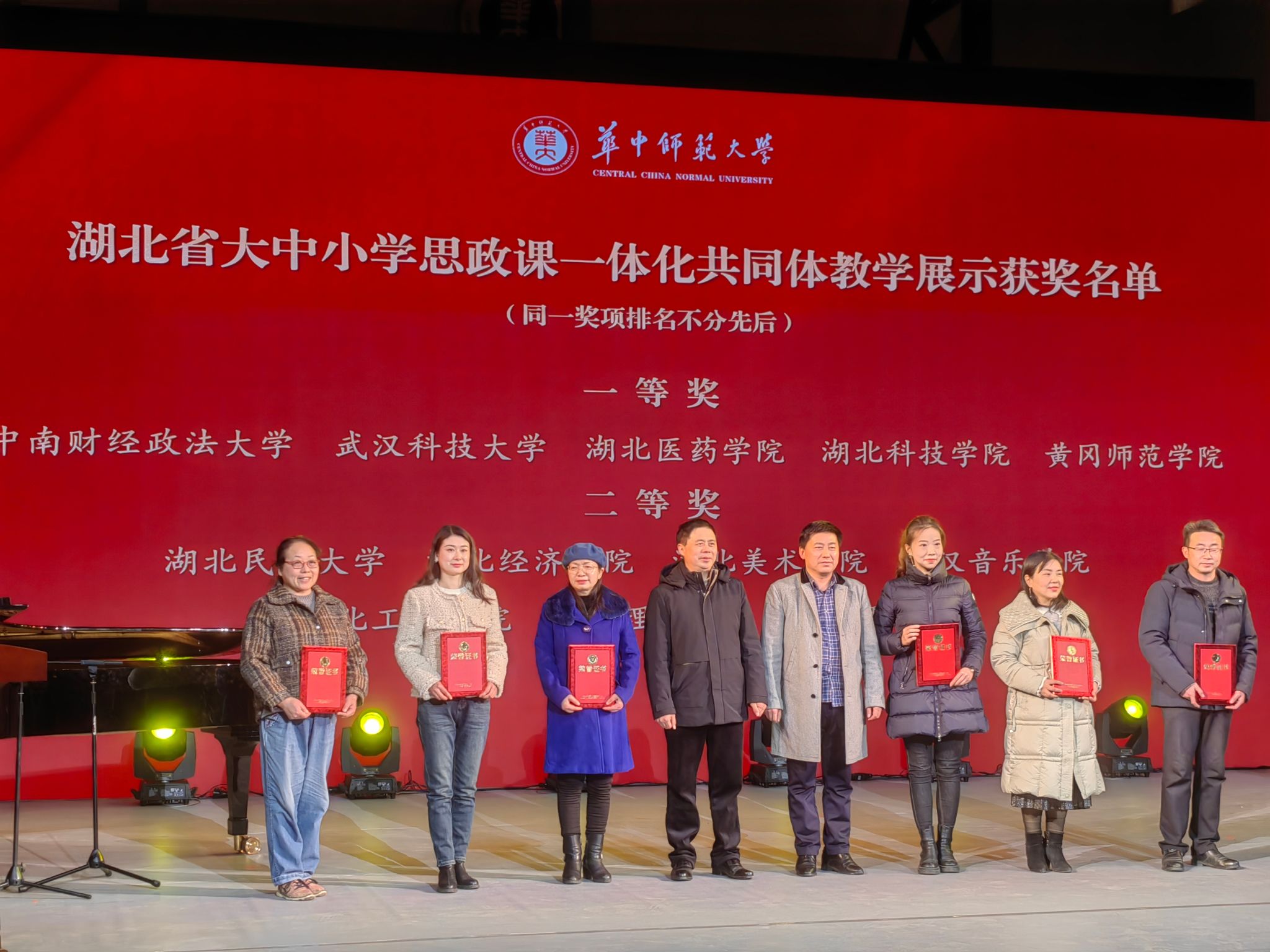 武科大网讯(通讯员陈希)1月3日,湖北省大中小学思政课一体化共同体表彰大会暨“歌声中的党史”特色思政课展演活动在华中师范大学音乐厅召开。太阳官网作为牵头高校,湖北商贸学院、武汉城市学院、武汉铁路桥梁职业学院、仙桃职业学院、仙桃市教育局、仙桃市理工中等专业学校、仙桃市第八中学、仙桃市第三中学、仙桃市仙桃小学共同参与完成的教学展示获全省一等奖。