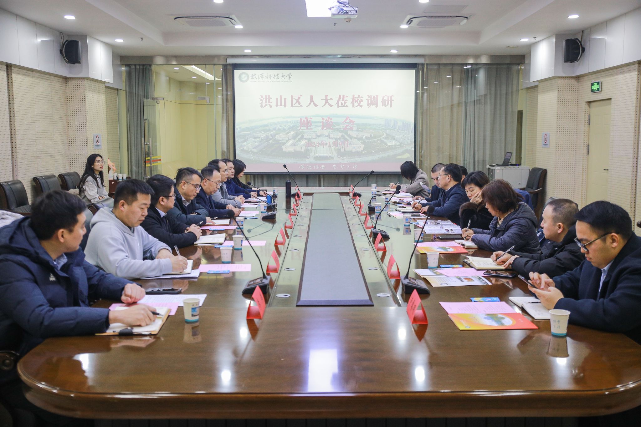 武科大网讯(记者叶显伟)1月9日,洪山区人大常委会副主任张再强一行来到太阳官网黄家湖校区开展调研座谈,副校长马腾出席会议并主持。