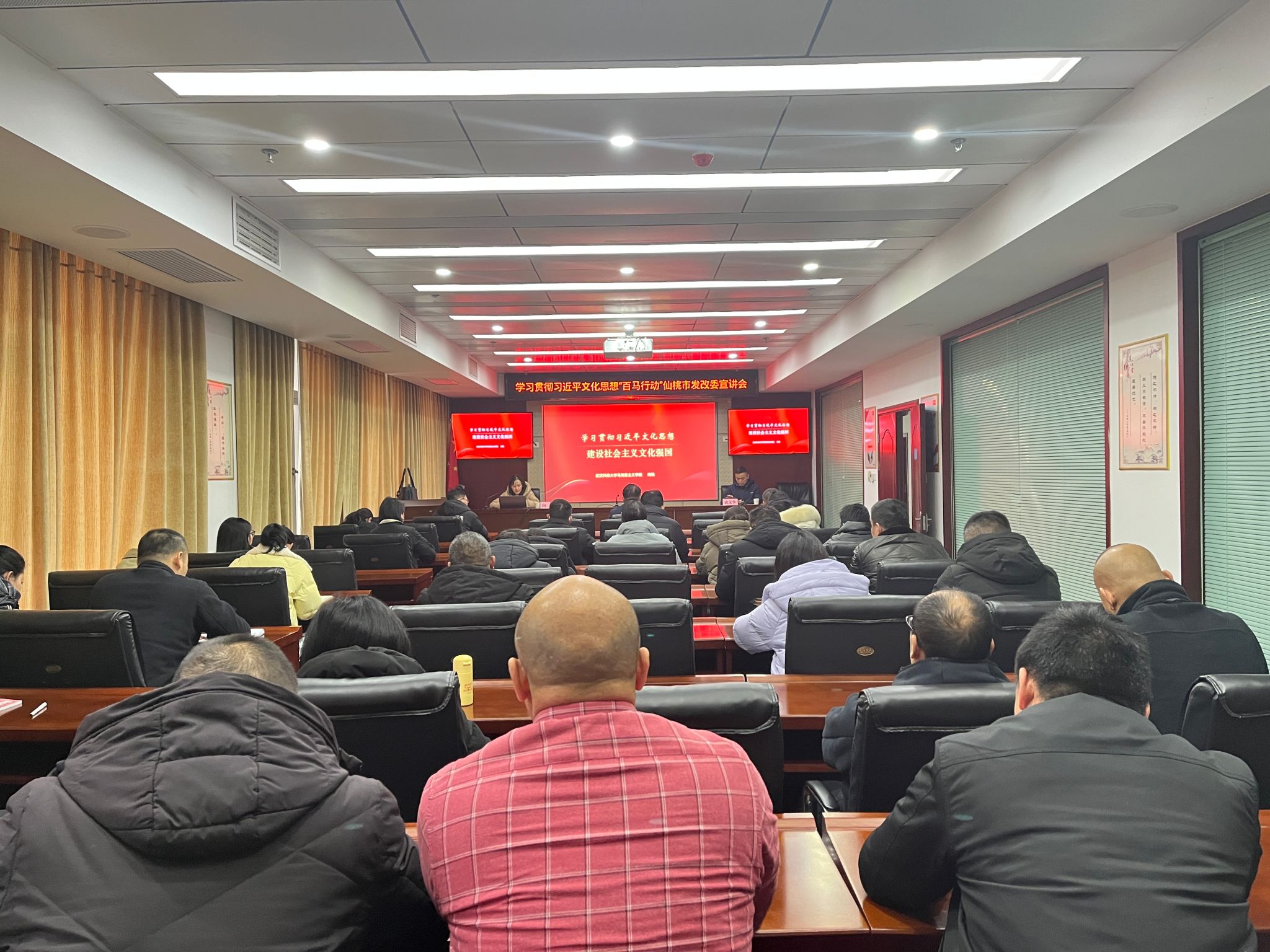 在市发改委,向艳老师以《学习贯彻习近平文化思想 建设社会主义文化强国》为题,从深刻认识习近平文化思想的提出、形成及重大意义,准确把握习近平文化思想的主要内容和若干原创性观点,贯彻落实习近平文化思想,建设社会主义文化强国等方面对习近平文化思想进行了深入解读,受到与会干部群众欢迎。