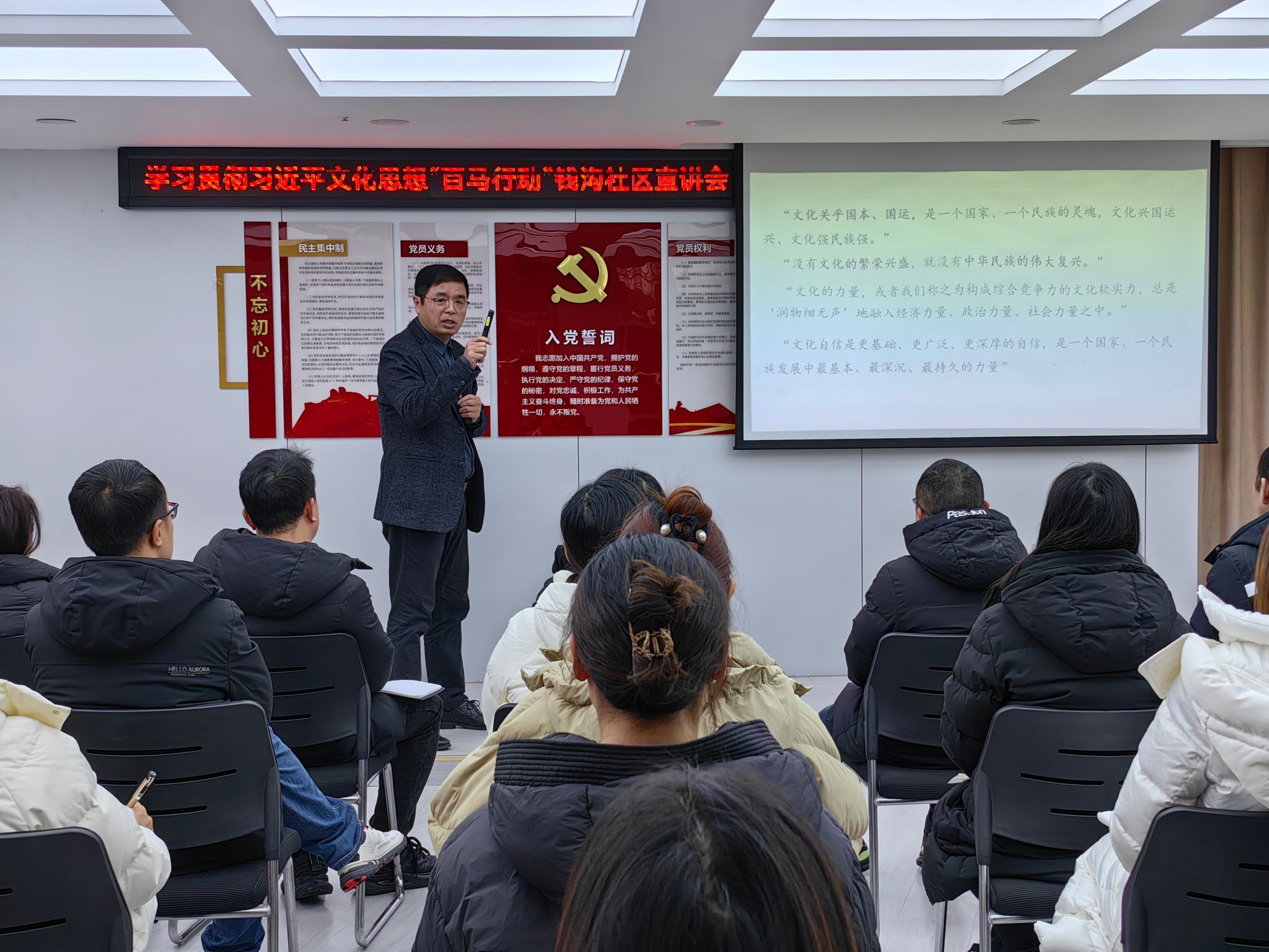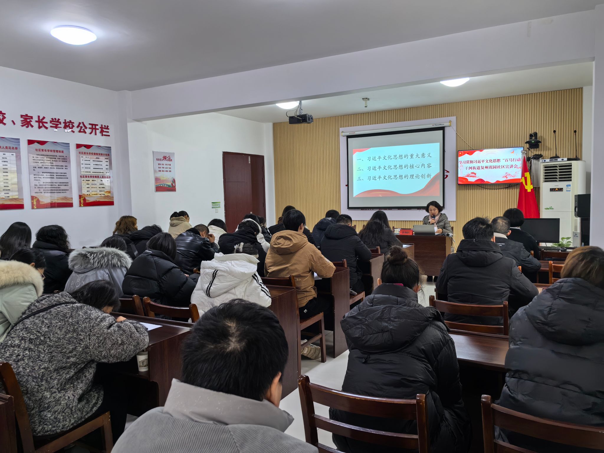 在复州花园社区,张荆红教授以《习近平文化思想的内容体系与理论创新》为题,从充分理解习近平文化思想的重大意义、全面理解习近平文化思想的内容体系、深入领会习近平文化思想的理论创新和学习习近平文化思想的成功案例等四个方面,展开了全面系统、深入浅出的宣讲。与会者纷纷表示,要进一步把学习成果转化为新时代中国特色社会主义建设的强大动力,用新时代中国特色社会主义思想指导工作,增强文化自信,推动文化产业繁荣发展。