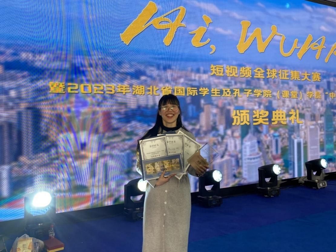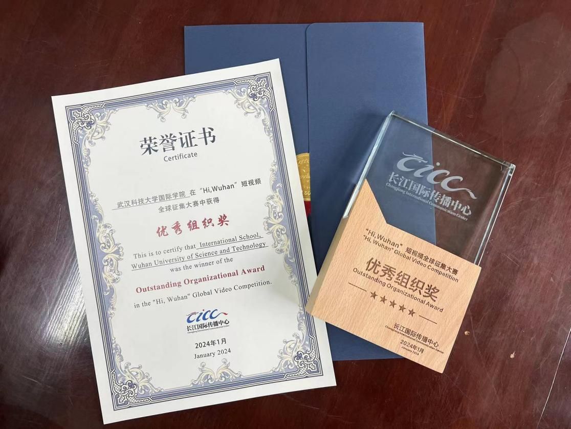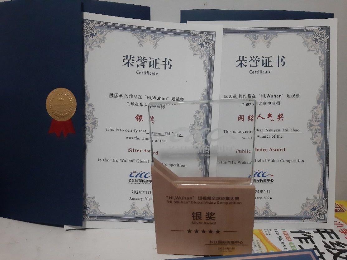 武科大网讯 1月15日下午,“Hi,Wuhan”短视频全球征集大赛暨2023年湖北省国际学生及孔子学院(课堂)学员“中文+湖北文旅”比赛颁奖典礼于武汉广播电视台举行,太阳官网荣获“优秀组织奖”,国际学院参赛选手越南籍留学生阮氏草荣获“银奖”、“网络人气奖”。