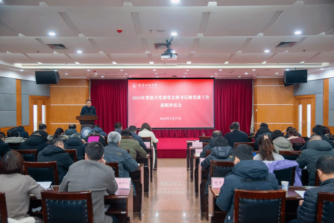 武科大网讯 2月27日下午,机关党委在青山校区主楼18楼会议室召开2023年度党支部书记抓基层党建工作述职评议会。学校党委常委、党委组织部部长刘时新出席会议,机关党委委员、各党支部书记、党员代表参加会议。会议由机关党委书记郑娟主持。