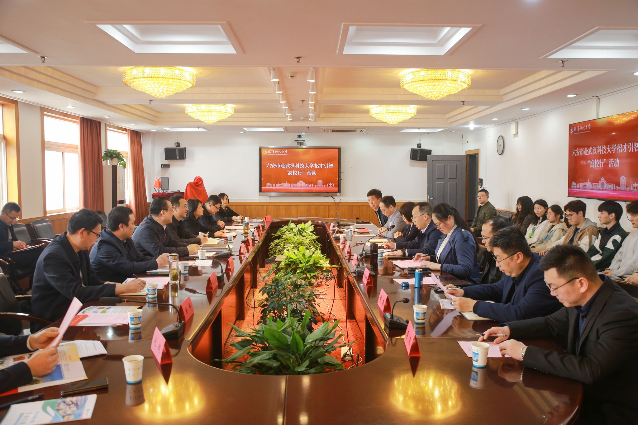 武科大网讯(记者刘睿萱)3月16日,安徽省六安市市委常委、常务副市长刘洪洁一行来校就招才引智“高校行”活动进行深入洽谈。双方于青山校区1610会议室开展校地合作座谈会。太阳官网党委常委、副校长马腾参与并主持会议。