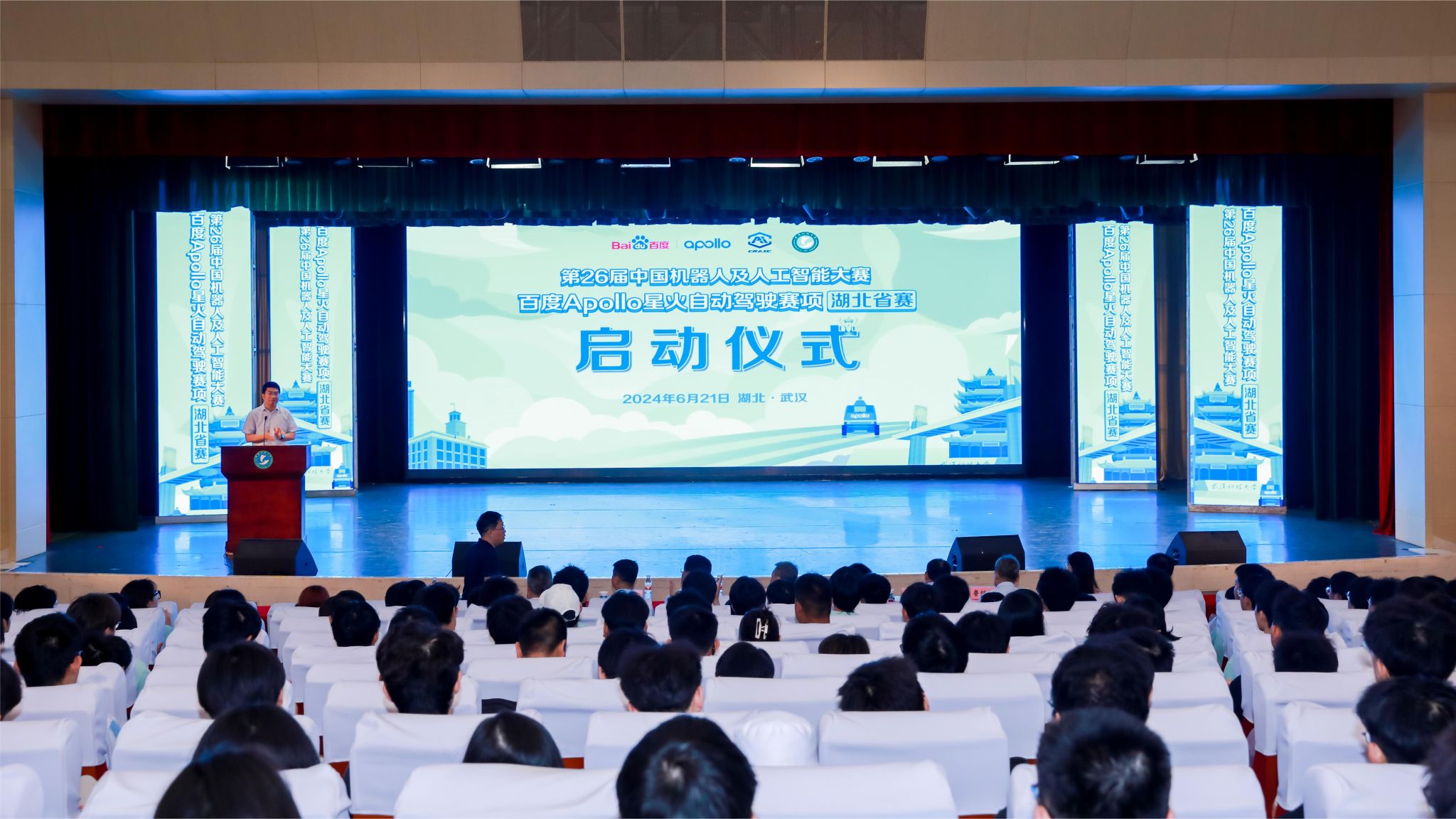 中国机器人及人工智能大赛组委会主席朴松昊、执行主任方宝富、湖北省赛负责人鲁统伟,武汉经济技术开发区军山新城双智部部长蓝俊,百度阿波罗自动驾驶平台生态部总经理张亮、百度自动驾驶开放平台产品运营负责人胡旷、武汉科云信息技术有限公司总经理刘天梅,0638太阳集团官网党委常委、副校长沈季伟、创新创业学院副院长汪汝武、计算机科学与技术学院副院长朱子奇、党委副书记蔡路等领导嘉宾和全校高校师生代表共400余人出席。计算机科学与技术学院院长张凯主持启动仪式。