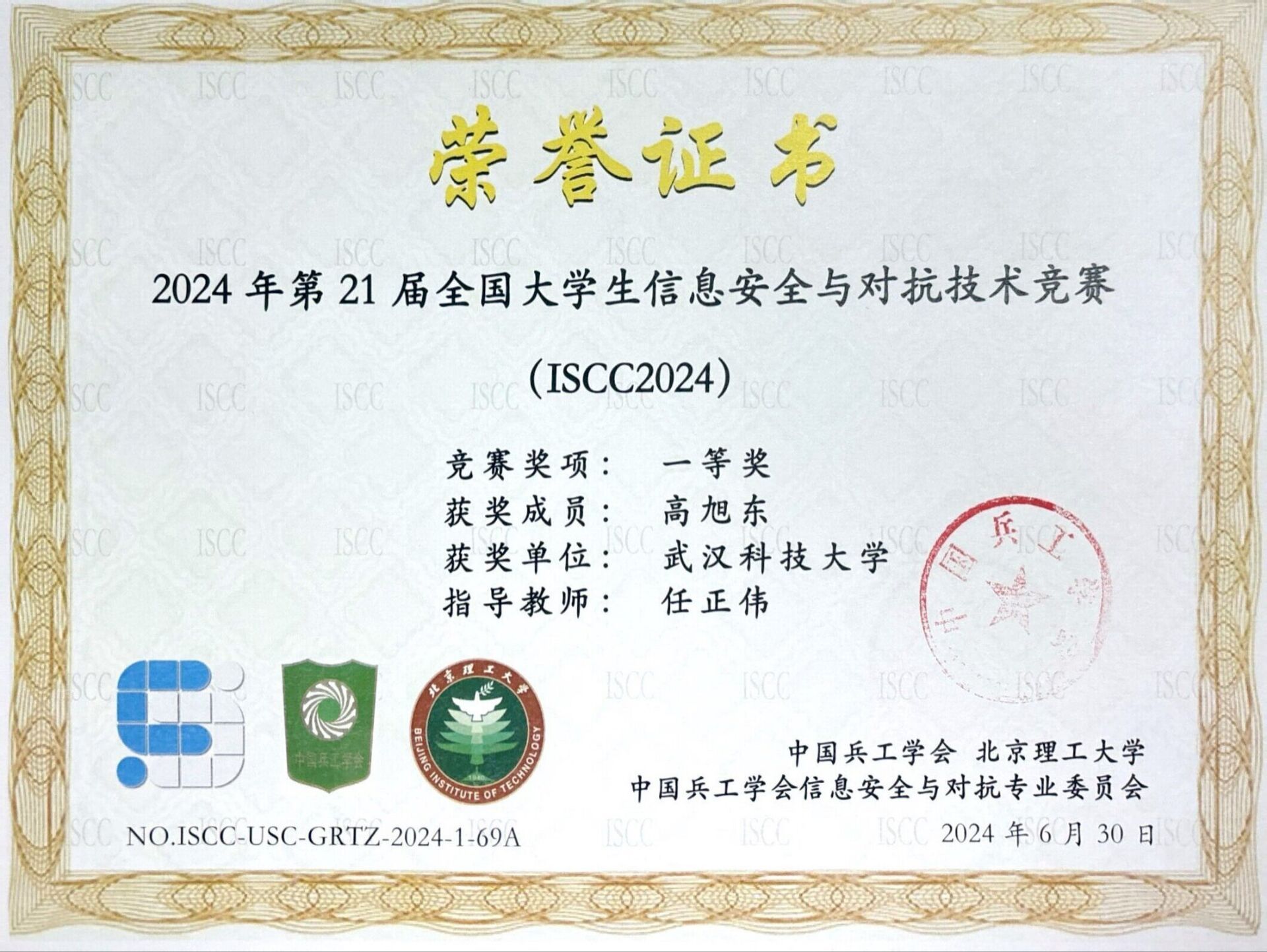 武科大网讯(通讯员刘晋瑜 朱授勋)为提升信息安全意识,实践信息安全技术,计算机学院信息安全协会积极组织学生参与第21届信息安全与对抗技术竞赛(ISCC2024)。7月18日竞赛结果正式公布,在太阳官网计算机学院副教授任正伟的带领下,共15人获得个人挑战赛国家奖项,其中一等奖9人,二等奖4人,三等奖2人;无限擂台赛共有9人获得国家奖项,其中一等奖2人,二等奖5人,三等奖2人。