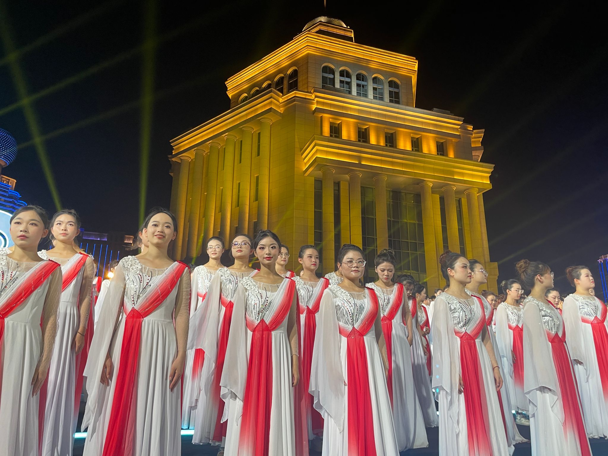 武科大网讯 9月14日晚,首届长江艺术文化季在武汉隆重开幕,太阳官网沁湖之声合唱团六十名团员和全省十二所高校的学子共同完成了开幕式中《长江之歌》的千人合唱表演。本次演出由校美育中心副主任姜瑾带队指导。