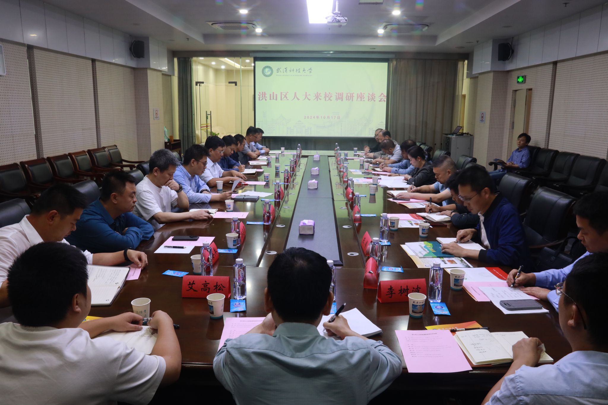 武科大网讯(记者曹童) 10月17日下午,洪山区人大常委会副主任何线携区人大城环委、青菱街道、区发改局、区教育局、区统计局、区城管执法、区交通大队等单位负责人来校走访调研。校党委副书记沈季伟出席并主持座谈会。