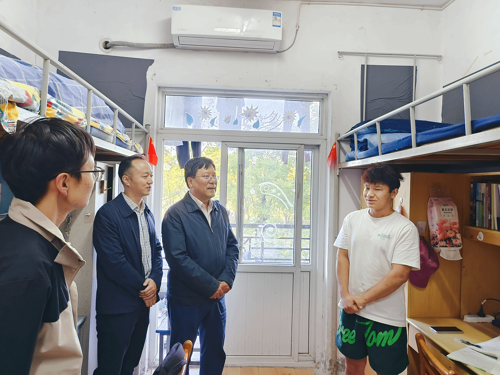 武科大网讯(通讯员罗思宇 郑晓旭)10月30日下午,学校党委副书记沈季伟深入城建学院2024级新生和计算机学院2021级毕业生学生宿舍,开展了“红色钢铁熔炉”“一站式”学生社区建设提质增效系列之“师生面对面”活动,并慰问家庭经济困难学生和少数民族学生,发放了慰问物资。城建学院党委书记徐斌、副书记胡丹蕾、全体辅导员以及计算机学院党委书记余淑均、副书记李苑、辅导员郑晓旭、刘广胜分别在北苑和南苑宿舍陪同走访。