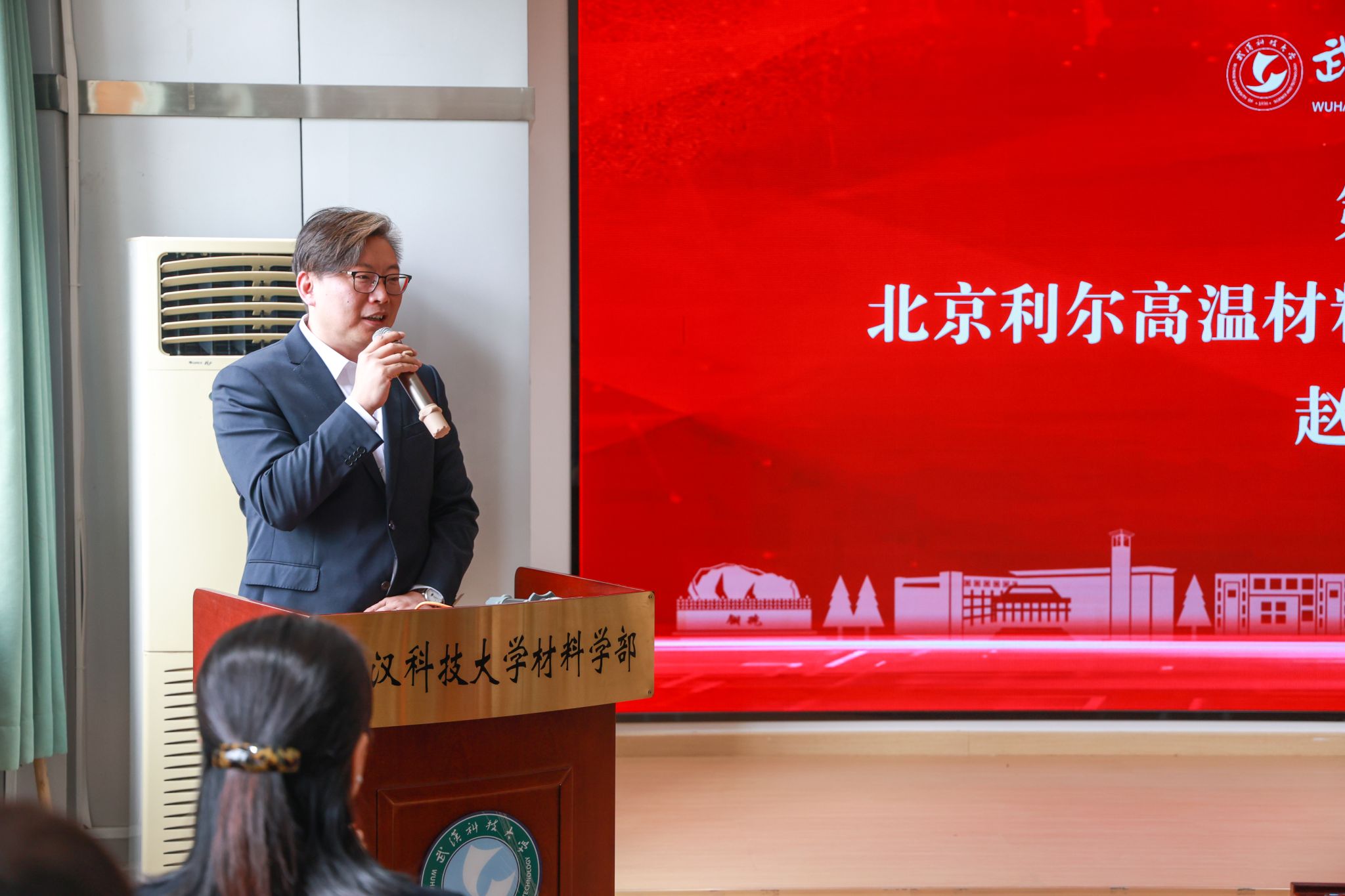 武科大网讯(记者叶显伟)5月23日上午,“利尔奖学金”颁奖暨校外生涯教育导师聘任仪式在青山校区6560报告厅举行。校党委副书记孙国胜、北京利尔高温材料股份有限公司董事长赵伟,副董事长、总裁颜浩,洛阳利尔功能材料有限公司技术副总仝尚好出席活动。材料学部党委副书记胡晶晶主持。