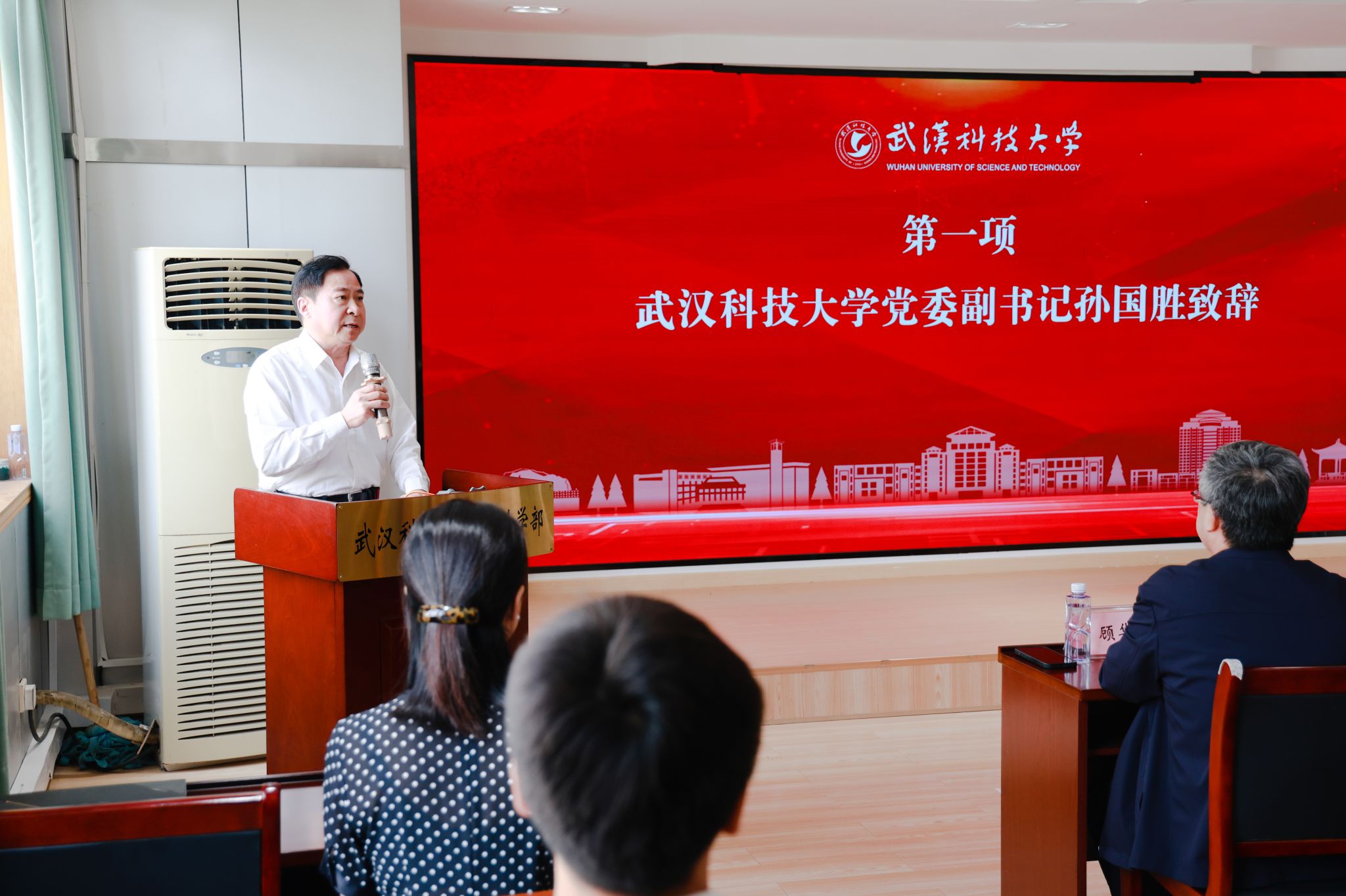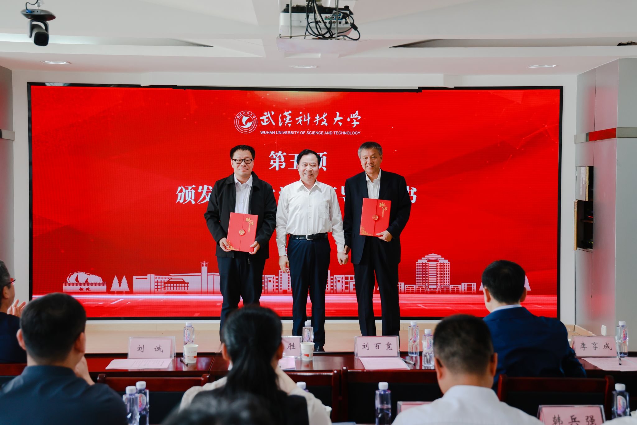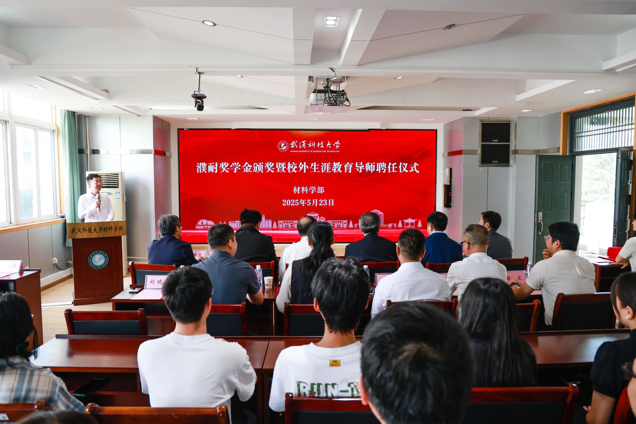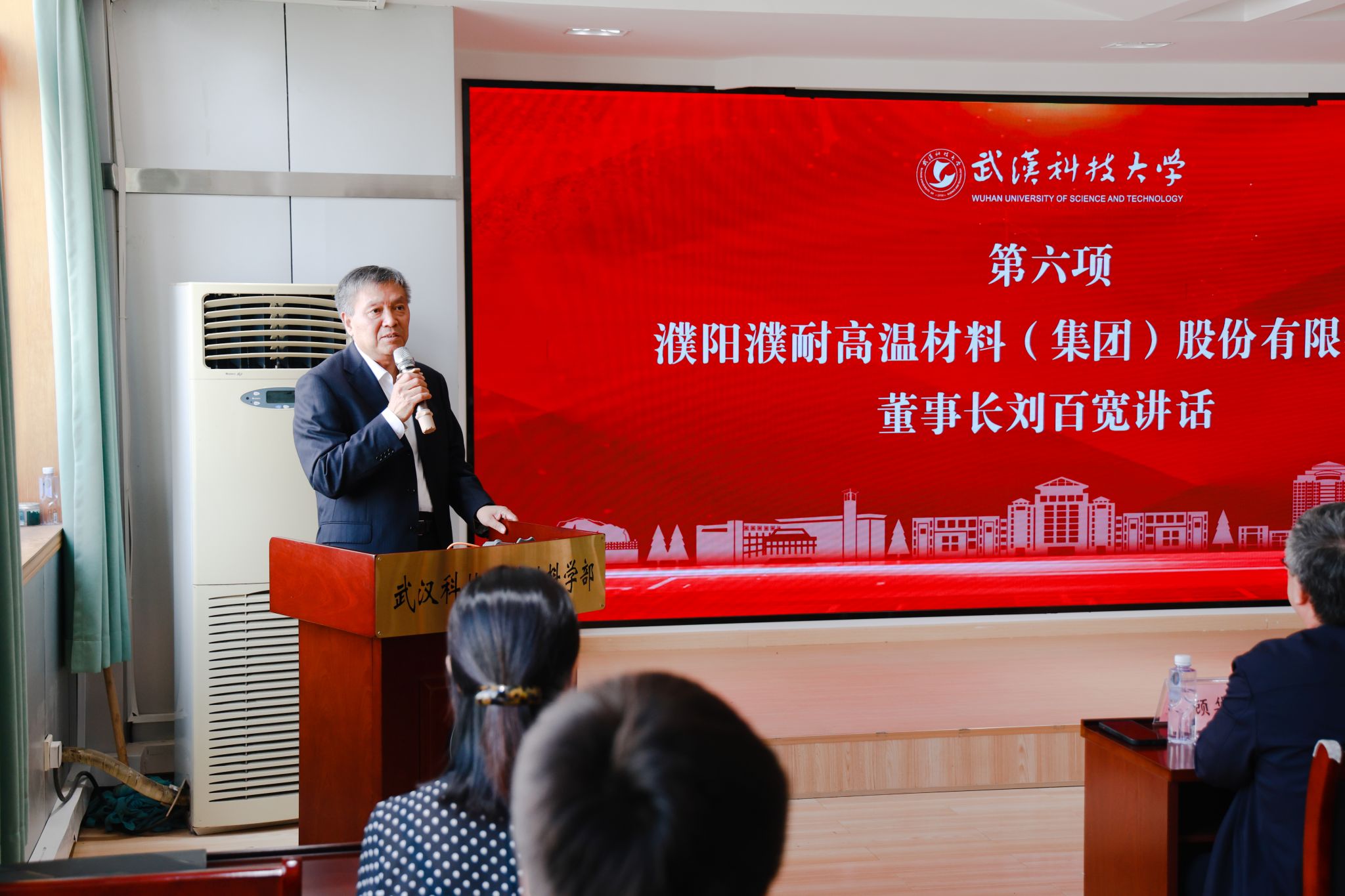 武科大网讯(记者叶显伟)5月23日下午,“濮耐奖学金”颁奖暨校外生涯教育导师聘任仪式在青山校区6560报告厅举行。校党委副书记孙国胜、濮阳濮耐高温材料(集团)股份有限公司董事长刘百宽出席并致辞。材料学部党委书记刘晓云主持。