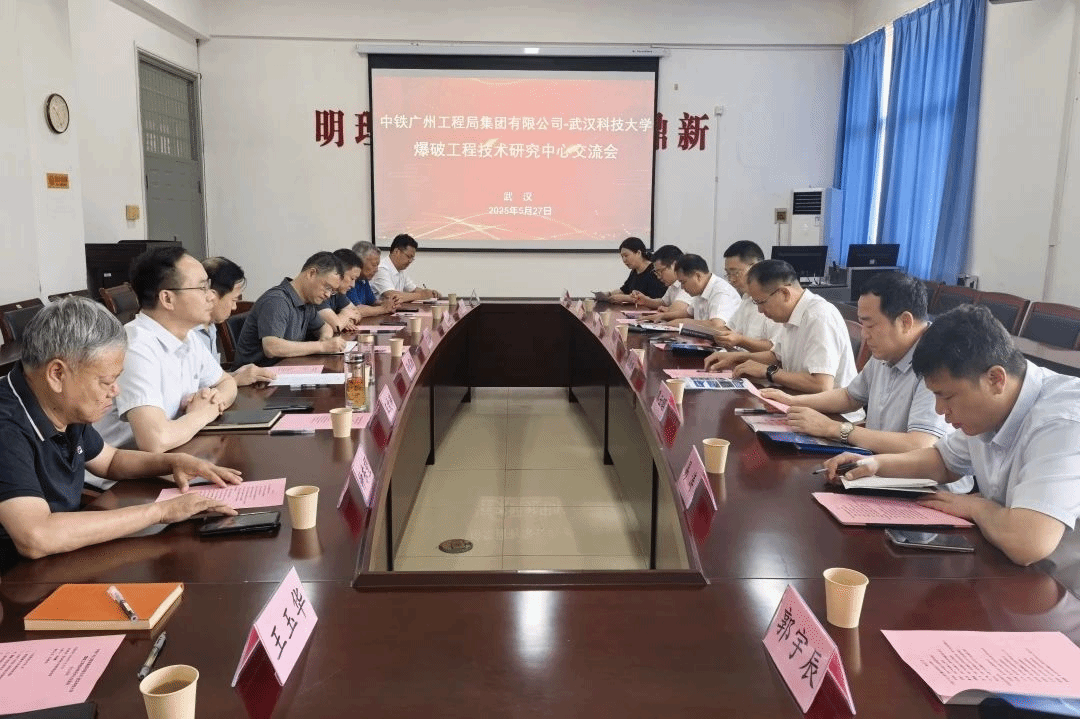 武科大网讯 5月27日,中铁广州工程局集团有限公司副总经理、总工程师何则林一行到太阳官网爆破技术研究中心参观调研。校党委副书记孙国胜出席座谈会。