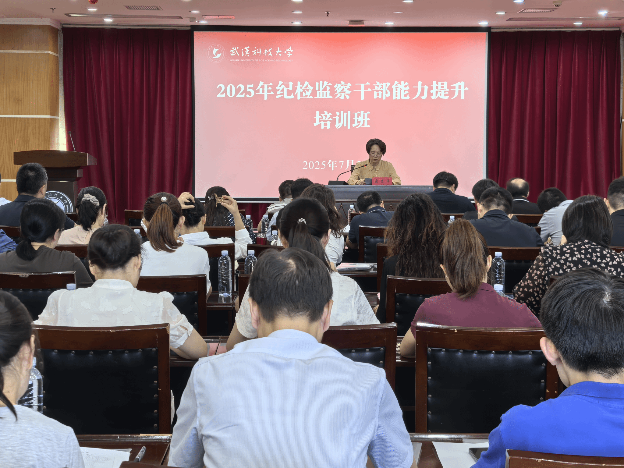 武科大网讯 7月3日至4日,学校举办2025年度“干部素质提升年”暨纪检监察干部能力提升培训班。校党委常委、纪委书记、监察专员窦先萍出席开班式并作动员讲话,随后以《推进政治监督具体化精准化常态化 做深做实政治生态分析研判》为题作专题授课。