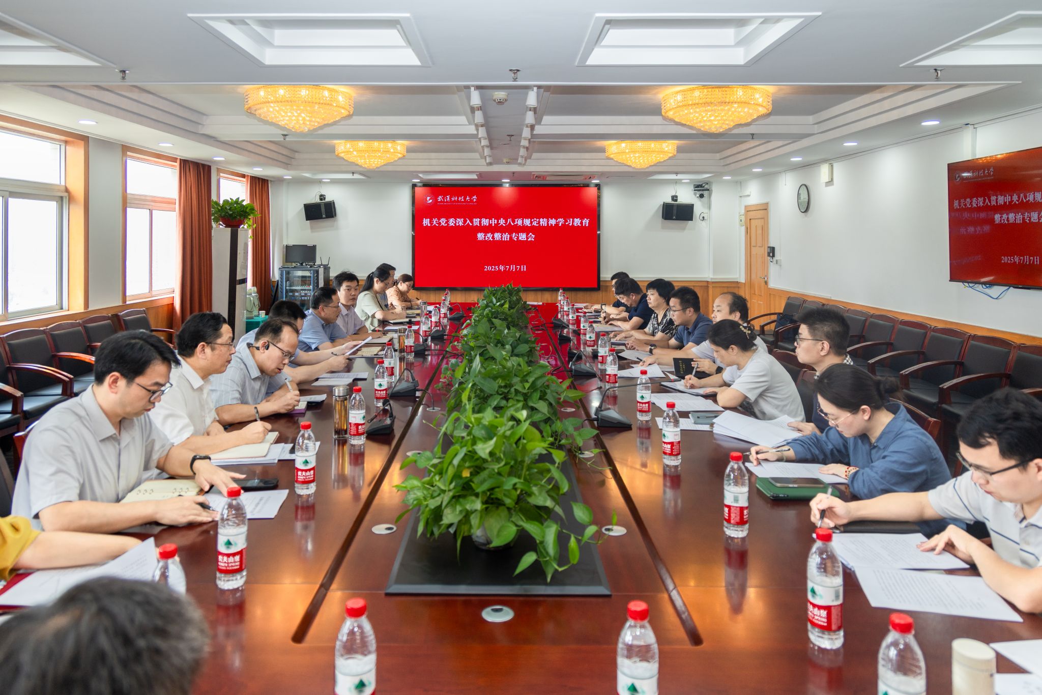 武科大网讯 7月7日下午,机关党委召开深入贯彻中央八项规定精神学习教育整改整治工作专题会。党委常委、组织部部长刘时新主持会议并讲话。
