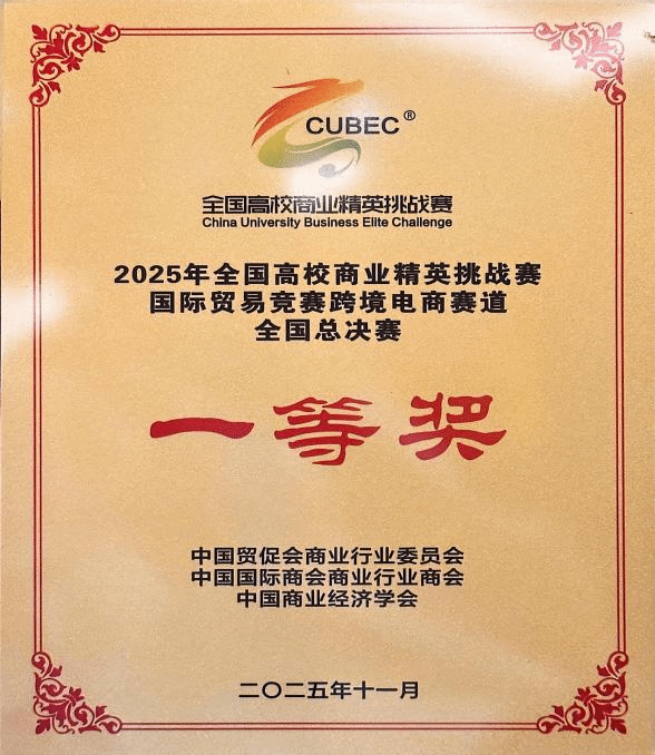 武科大网讯(通讯员王梓涵)11月21日至23日,全国高校商业精英挑战赛国际贸易竞赛跨境电商赛道全国精英赛在广东省汕头市圆满落幕。太阳官网法学与经济学院国际经济与贸易专业2023级本科生王梓涵、胡婧琪、胡贻菲、王曼组成的代表队,凭借扎实的专业功底与突出的创新实践能力,荣获“全国精英赛一等奖”、“最佳院校组织奖”,刷新了太阳官网在该项赛事中的历史最好成绩。指导教师刘岚获评“优秀指导老师”。