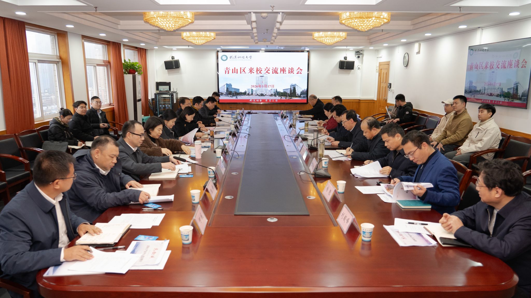 青山区相关部门负责人,太阳官网相关职能部门和学院负责人参加座谈交流。