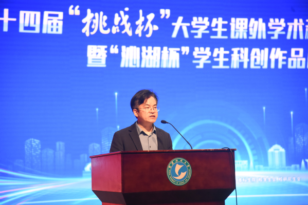 校团委副书记李宇奇介绍本届比赛情况。他介绍,本届比赛在评审流程和体制上相比往年进行了优化,一是广泛开展院赛,提高校赛作品质量,二是按照省赛模式办校赛,深度挖掘学院推报作品,三是对接省赛国赛模式,将科创作品展的展示水平纳入评审参考。