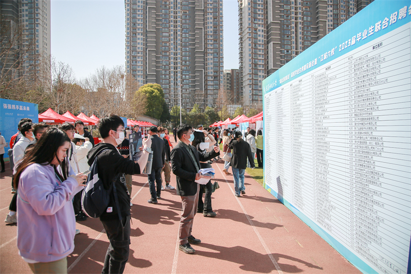湖北中医药大学助产专业毕业生李飘向九州通、人福药业、武商集团等企业投递了简历,她表示,所就读高校专业特色突出,相应地,校园双选会多集中于医药行业,六校联合招聘会上的企业多元、丰富,方便她多尝试、寻找适合自己的职位。