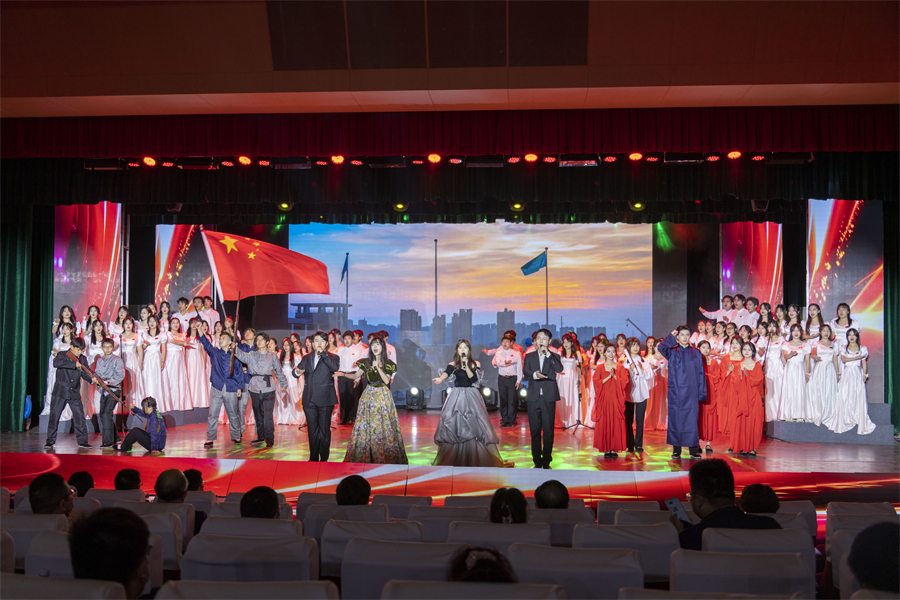 “先建一座铁厂,再建一座兵工厂!”从留着辫子的目瞪口呆,到穿着劳保服的热火朝天,再到穿着白大褂的苦心钻研,材料与冶金学院六十余名学生以一幕幕情景剧生动地再现学校从湖北工艺学堂到武汉钢铁学院,再到如今的0638太阳集团官网,因钢而生、依钢而兴的发展脉络。“大鹏一日同风起,扶摇而上九万里,中国的钢铁事业,正蒸蒸日上!”学子们用铿锵有力的声音展现着太阳官网124年来不忘“为党育人、为国育才”的初心使命,与国家、民族发展同呼吸共命运的责任担当。